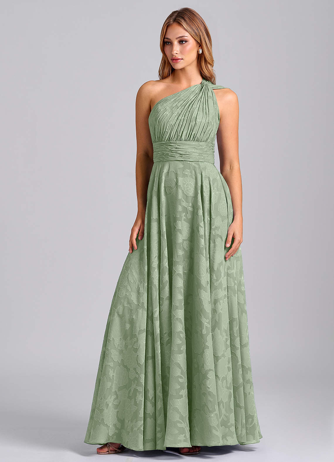 Abito A-Line in Burnout Floreale Monospalla Verde Salvia