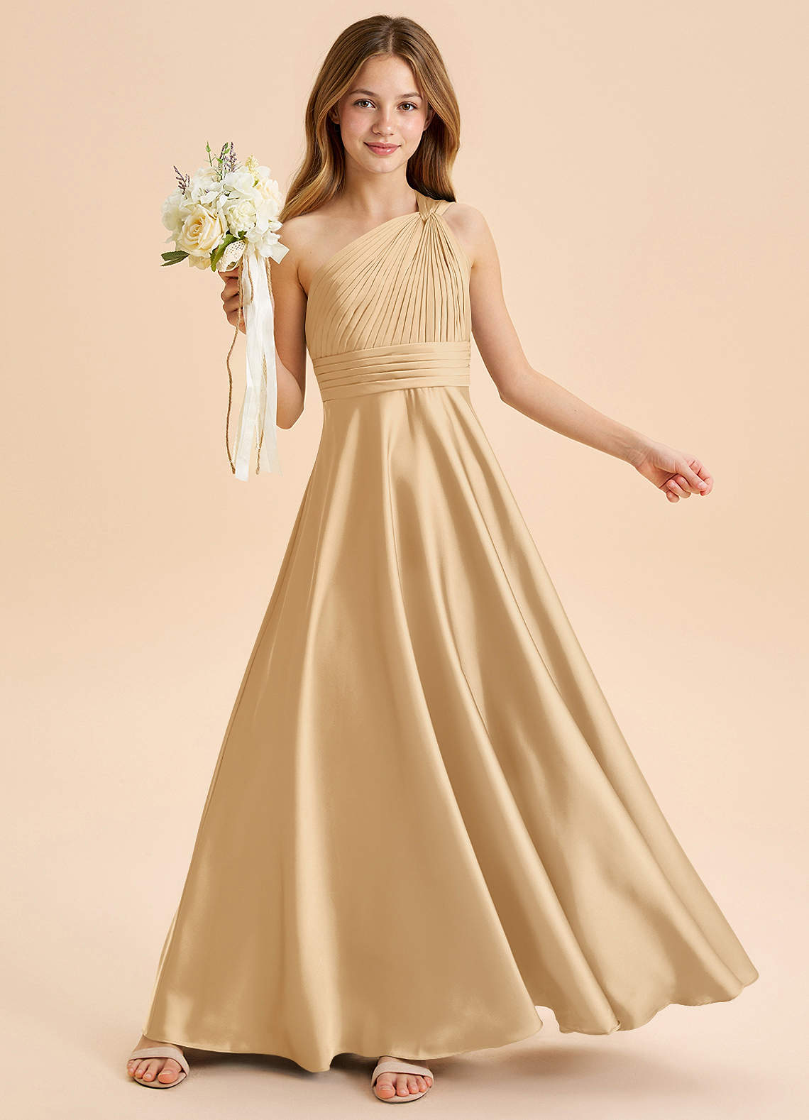 Abito A-Line in Raso Elasticizzato Plissettato Oro