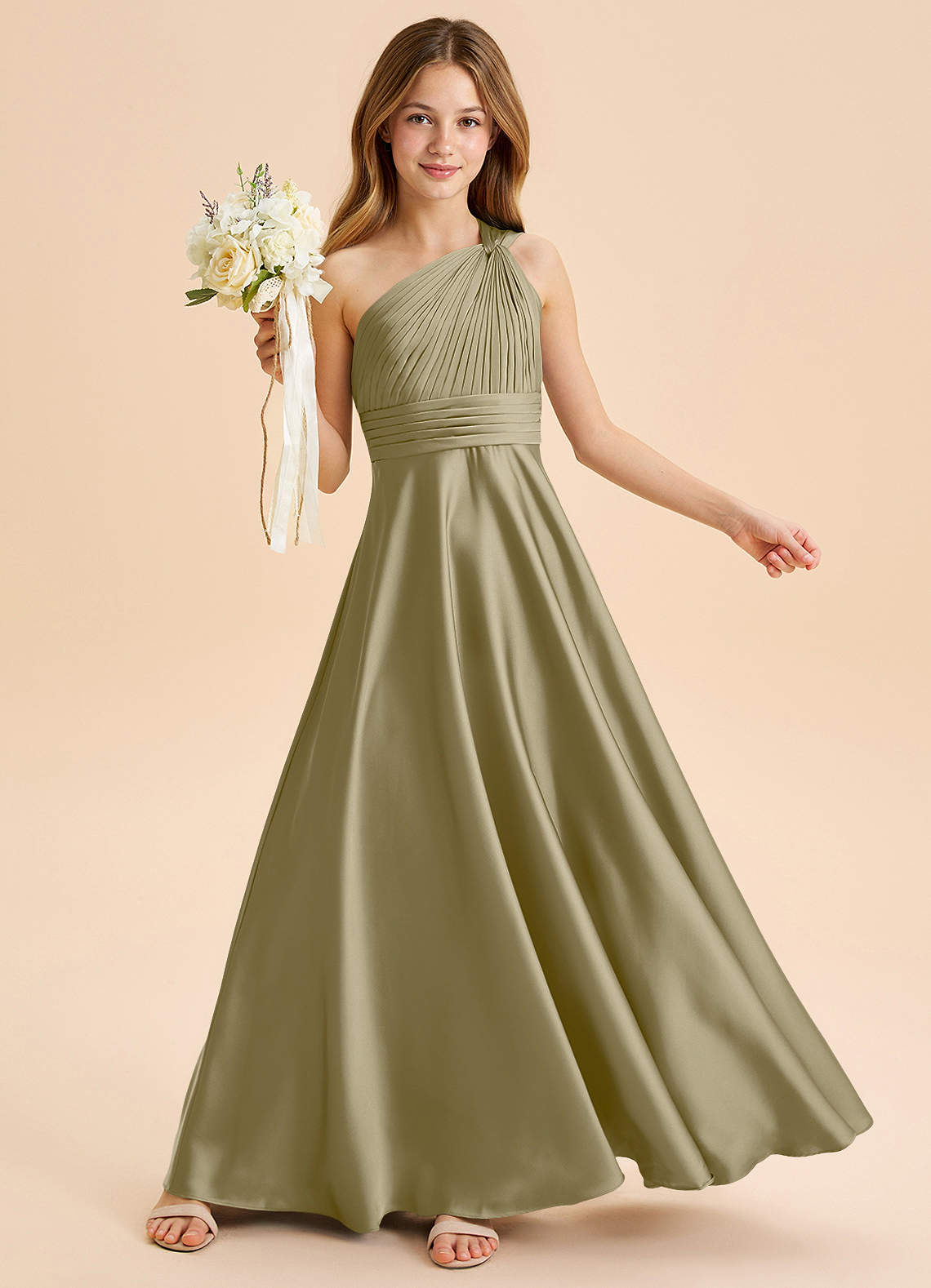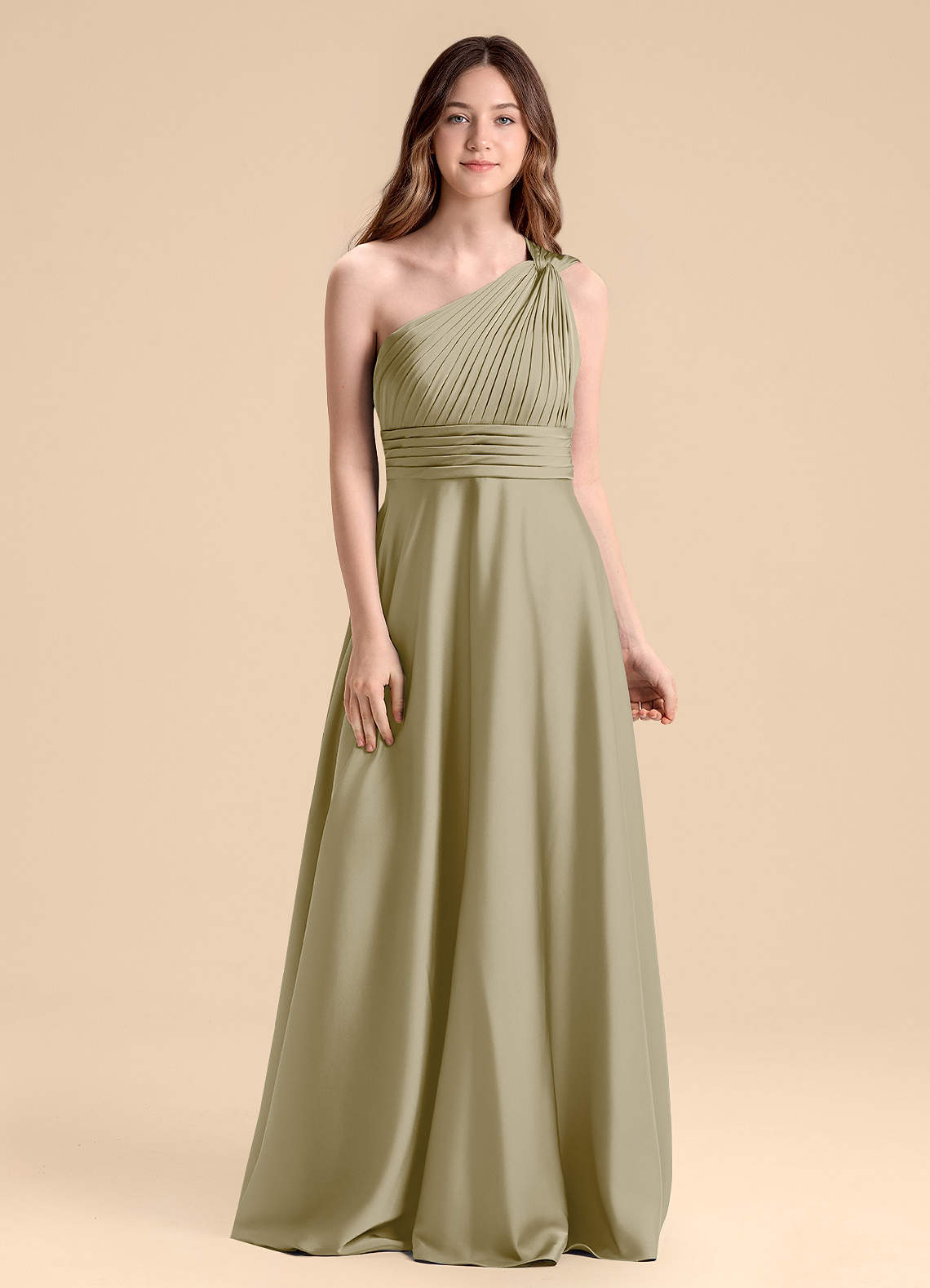 Abito A-Line in Raso Elasticizzato Plissettato Verde Muschio