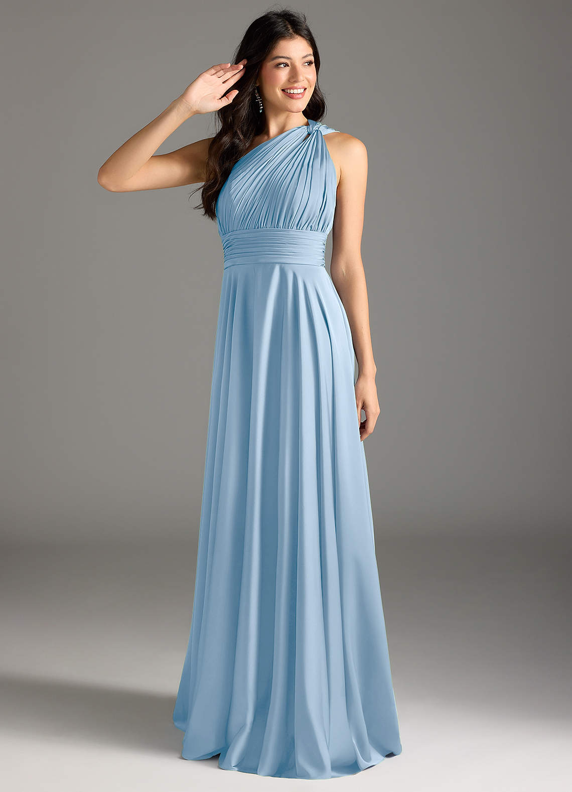 Abito A-Line in Raso Elasticizzato Monospalla Azzurro Polvere