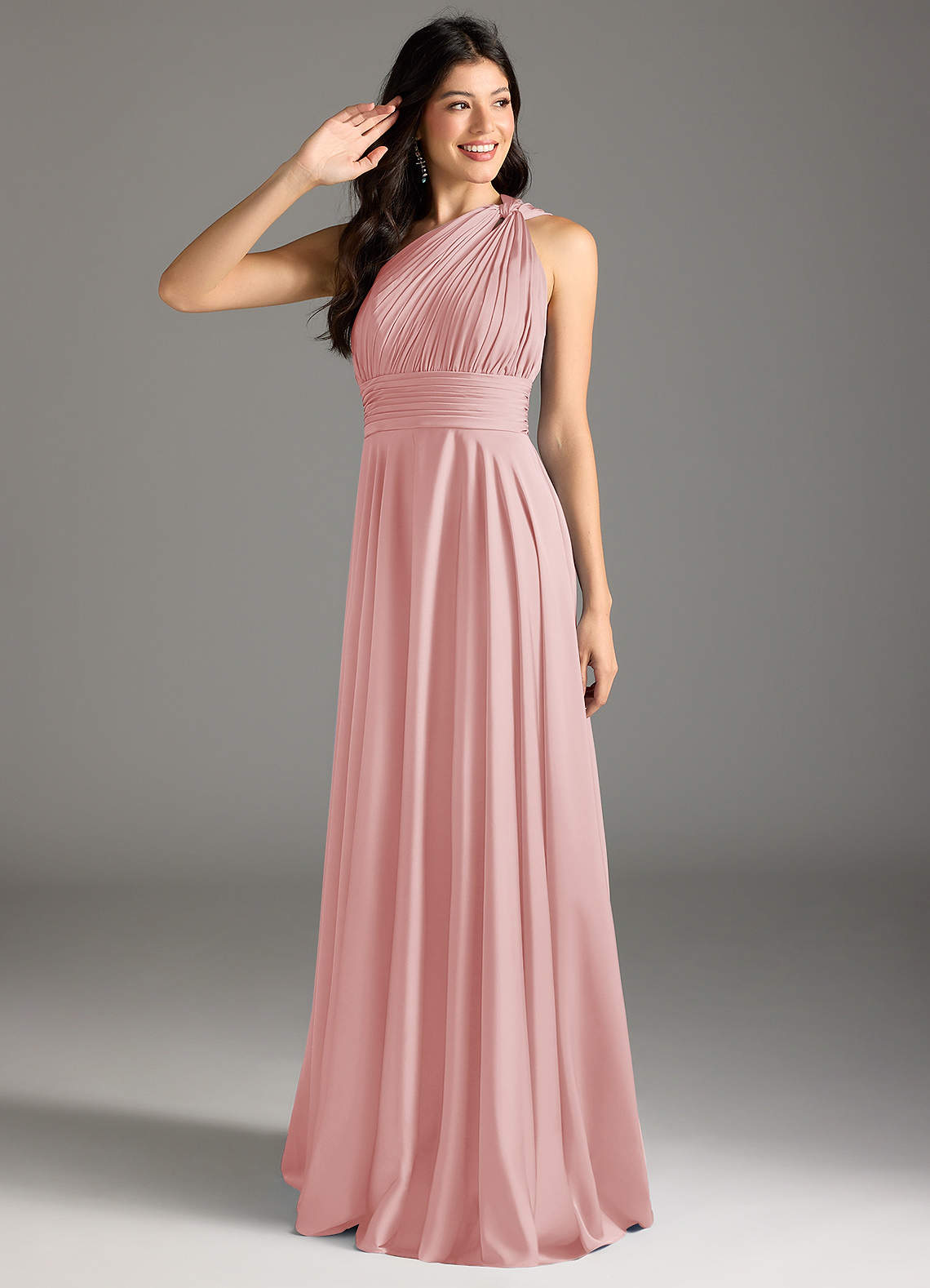 Abito A-Line in Raso Elasticizzato Monospalla Rosa Cipria