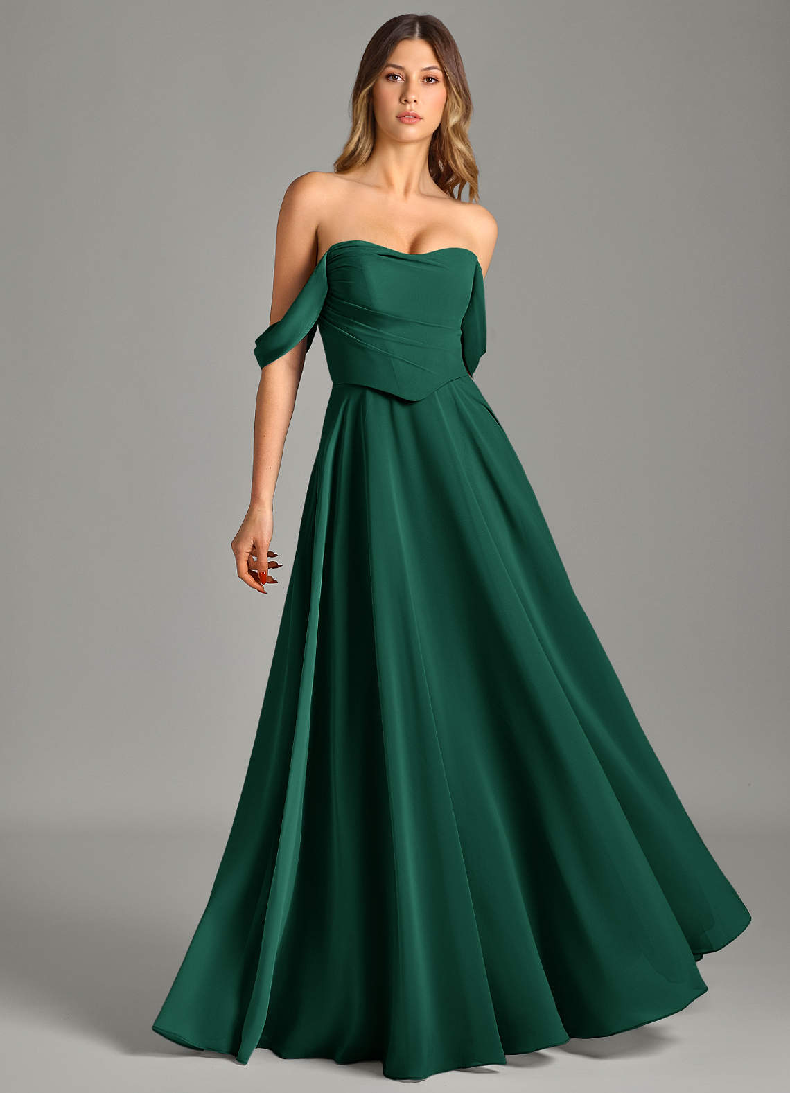 Abito Convertibile A-Line in Chiffon a Spalla Scoperta Smeraldo