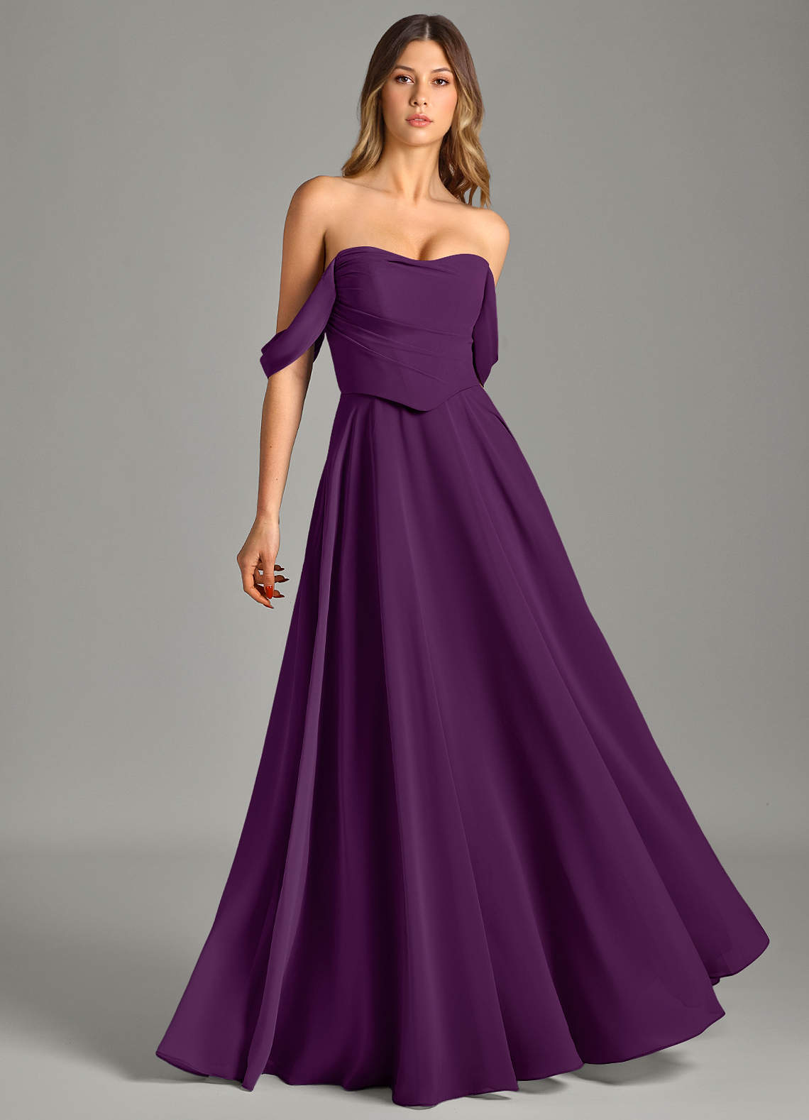 Abito Convertibile A-Line in Chiffon a Spalla Scoperta Uva