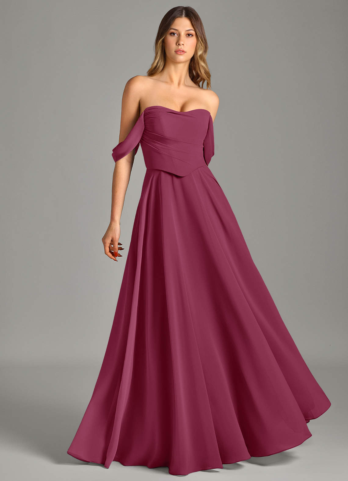 Abito Convertibile A-Line in Chiffon a Spalla Scoperta Gelso