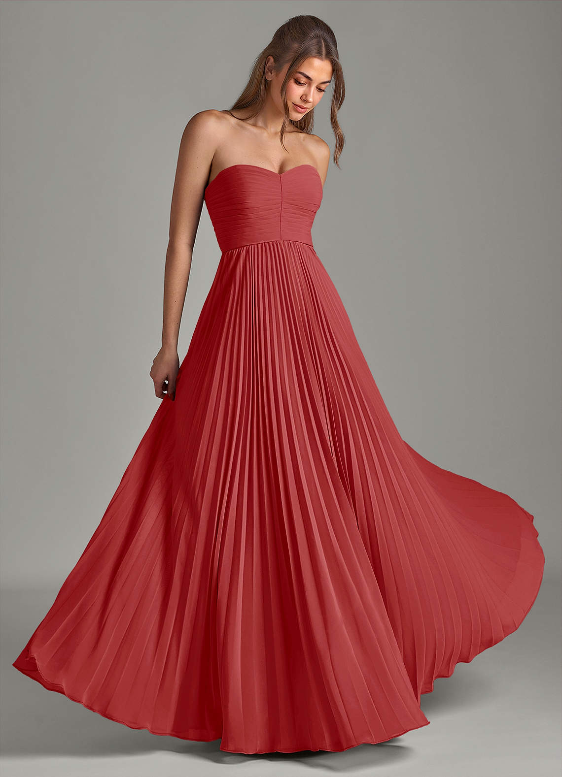 Abito A-Line in Chiffon Senza Cinturino Ruggine