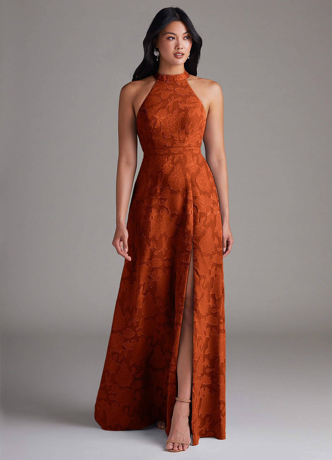 Abito A-Line in Burnout Floreale Spacco Laterale Paprika