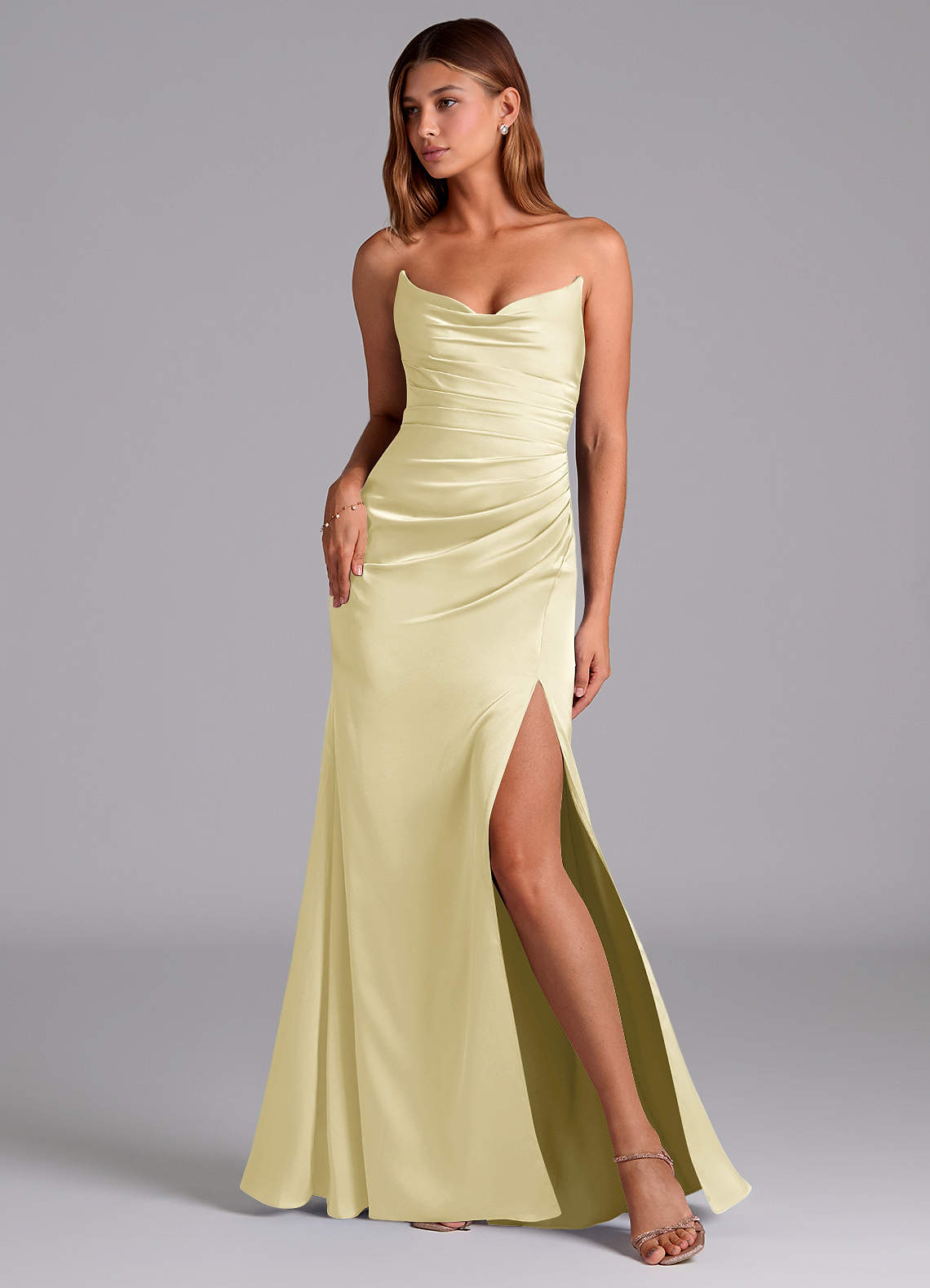 Abito Sirena in Raso Elasticizzato Senza Cinturino Sorbetto Al Limone