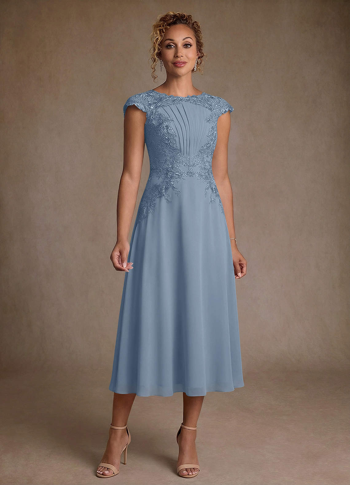 Abito A-Line in Chiffon Pizzo Blu Polveroso