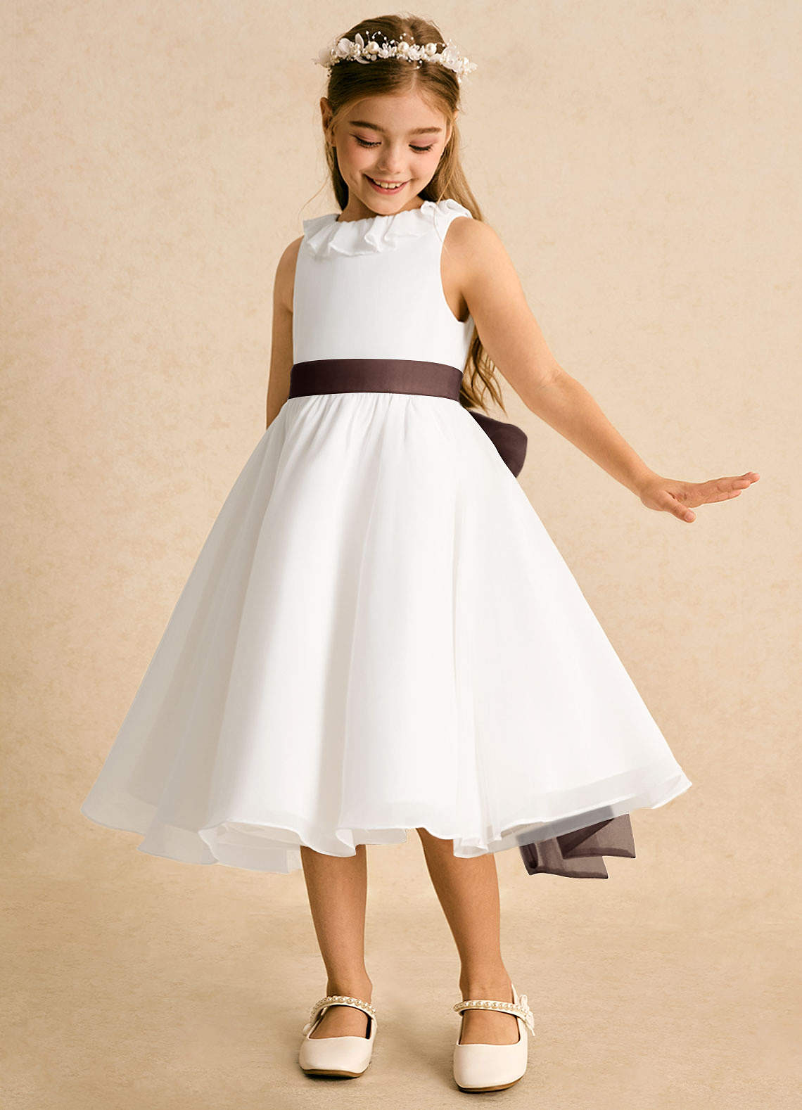 Abito A-Line in Chiffon Fiocco Avorio Ganache