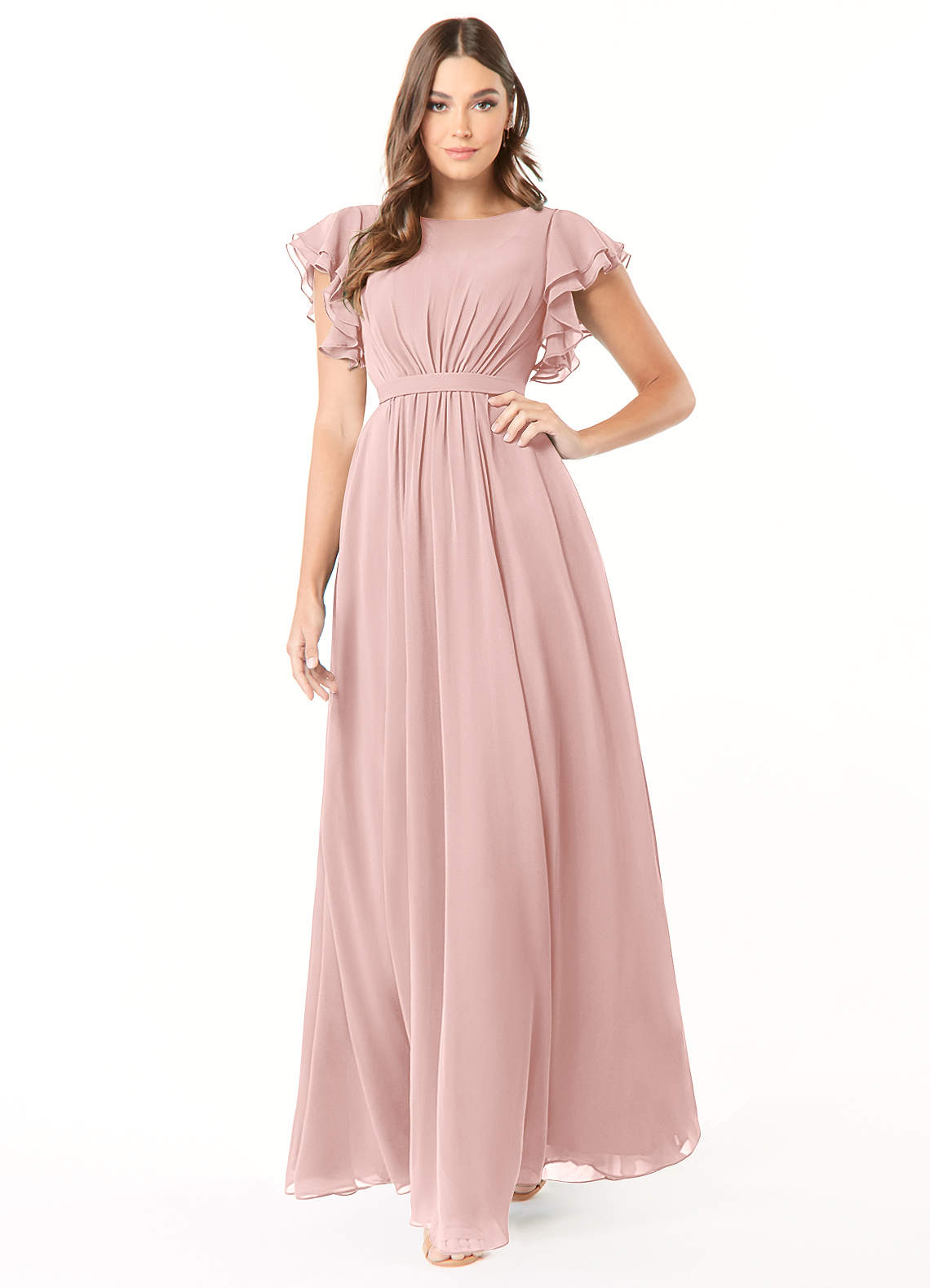 Abito A-Line Arricciato Chiffon Floor-Length Rosa cipria