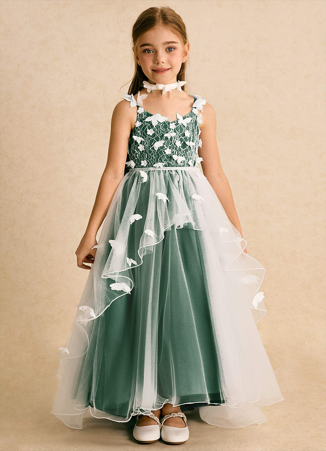 Abito Principessa in Tulle Pizzo Avorio Verde Scuro