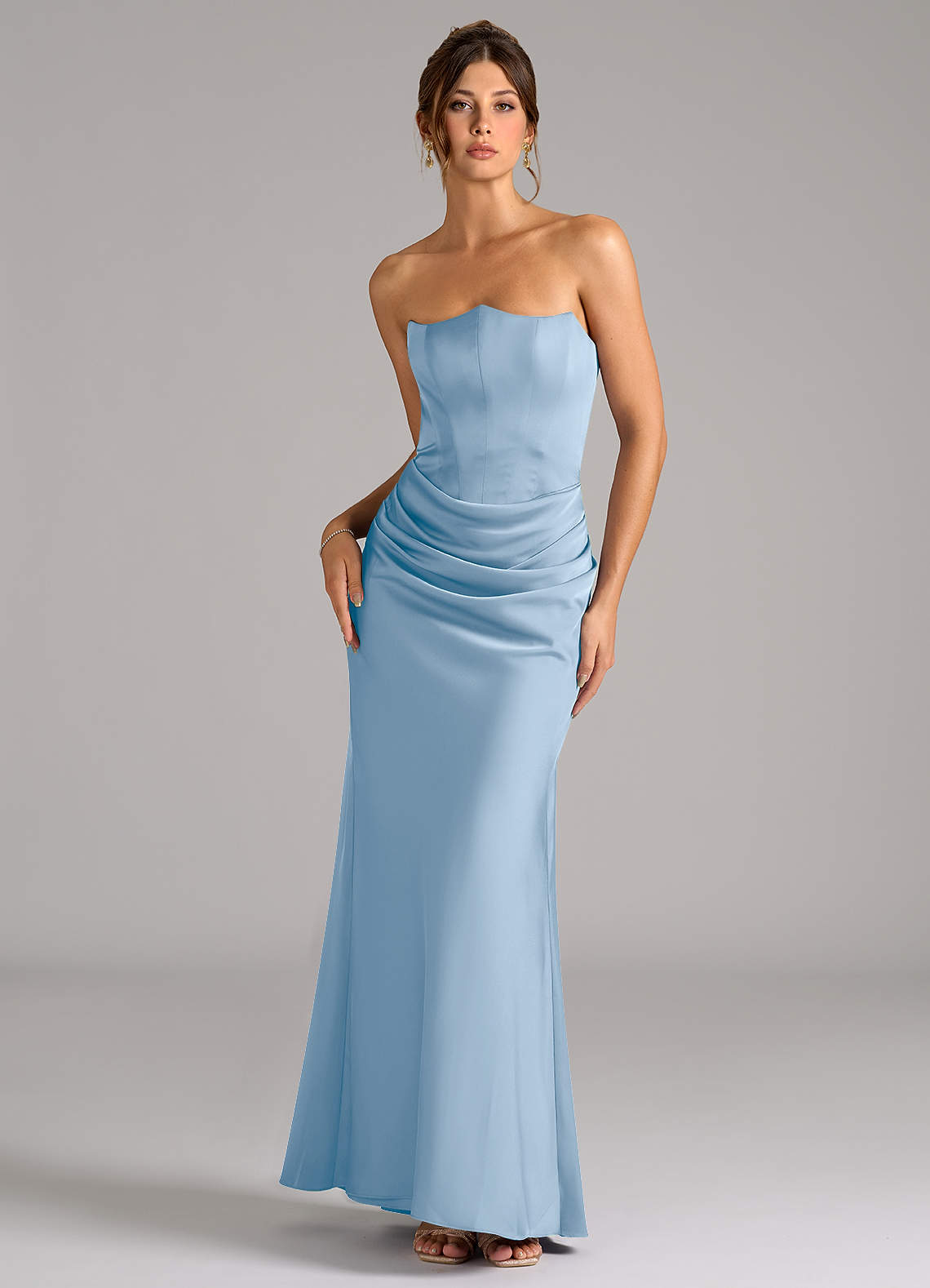Abito Convertibile Sirena in Raso Elasticizzato Senza Cinturino Azzurro Polvere