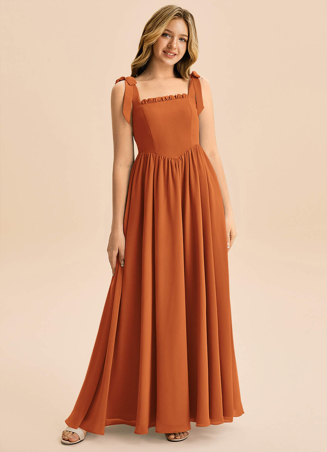 Abito A-Line in Chiffon Fiocco Cannella