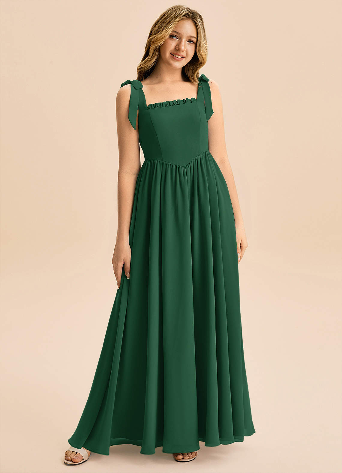 Abito A-Line in Chiffon Fiocco Verde Scuro
