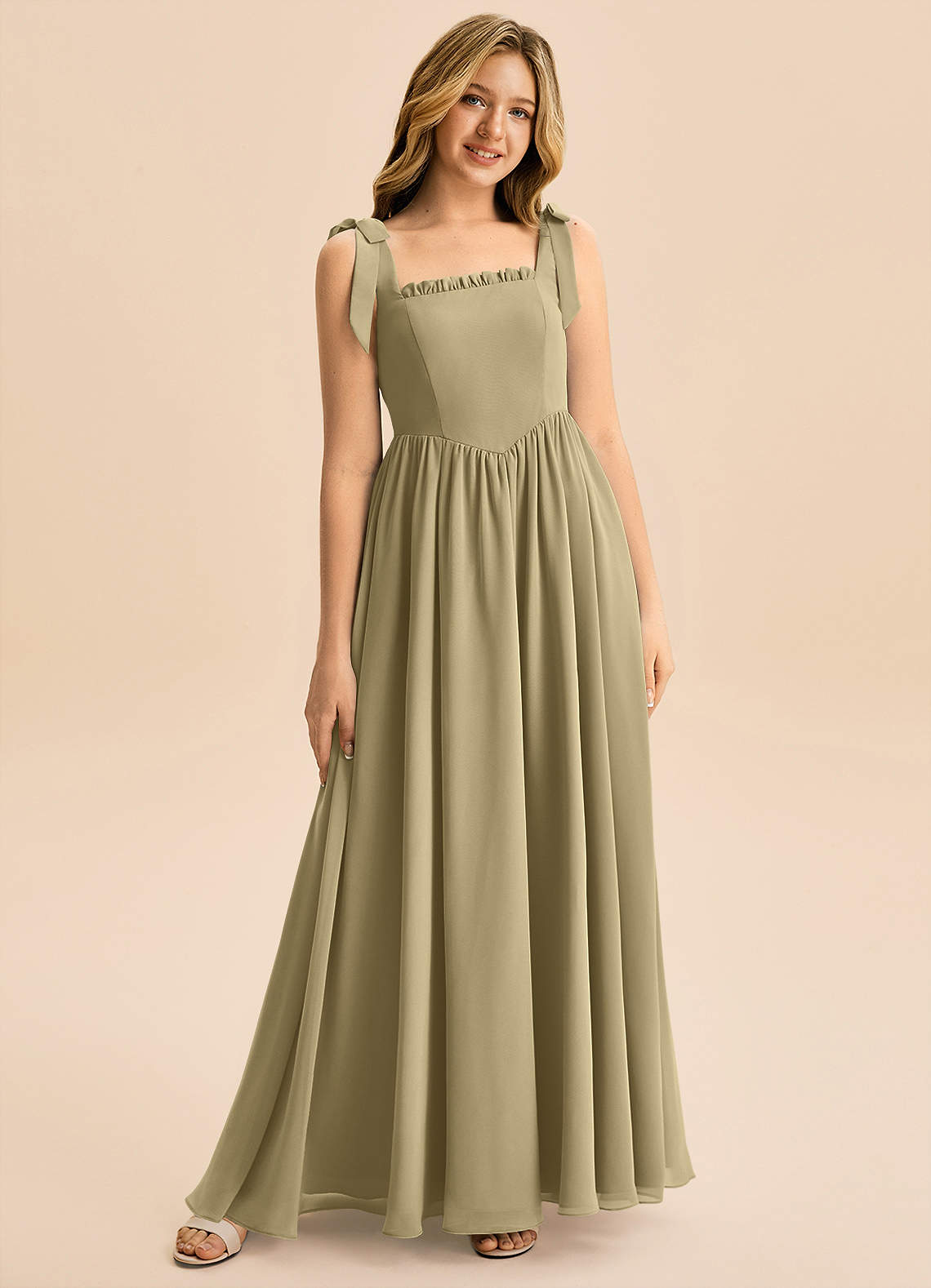 Abito A-Line in Chiffon Fiocco Verde Muschio