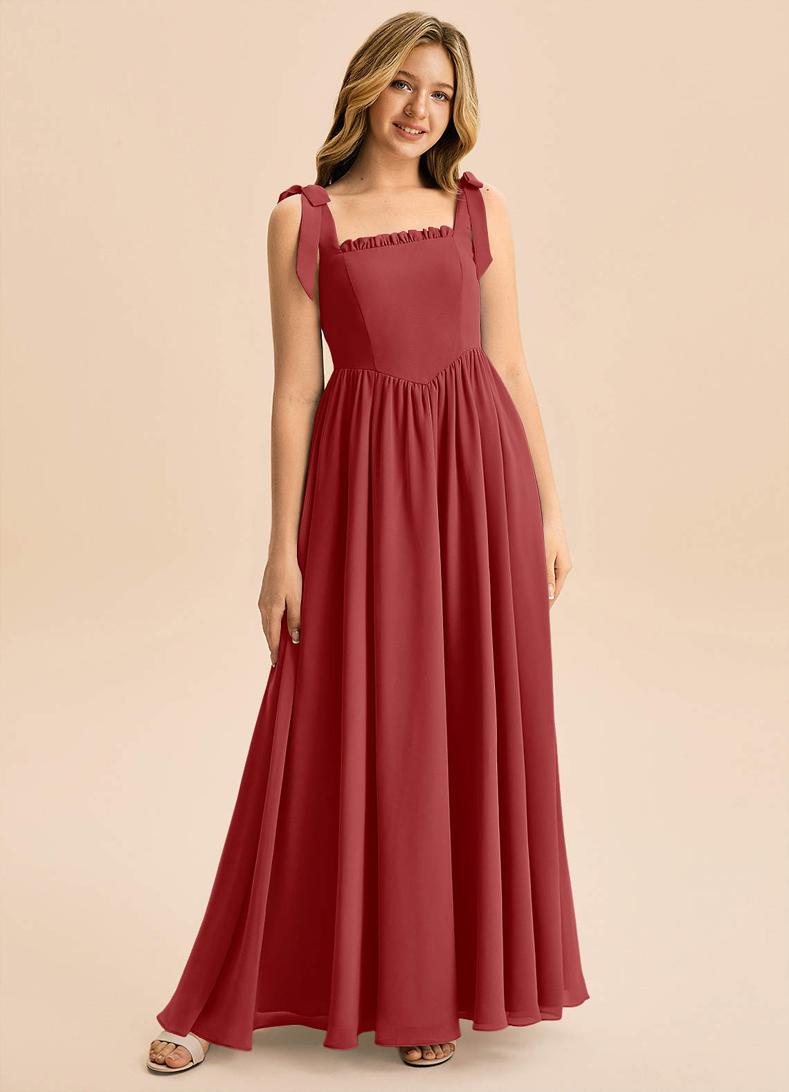 Abito A-Line in Chiffon Fiocco Ruggine