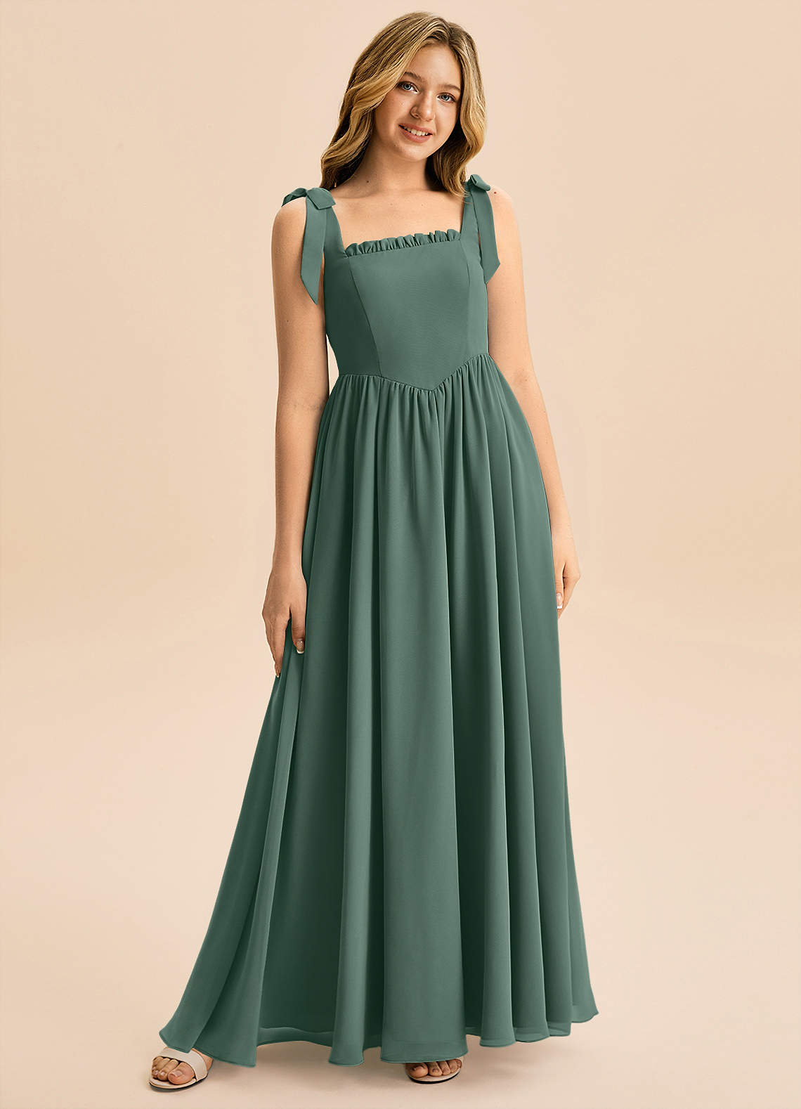 Abito A-Line in Chiffon Fiocco Muschio Marino