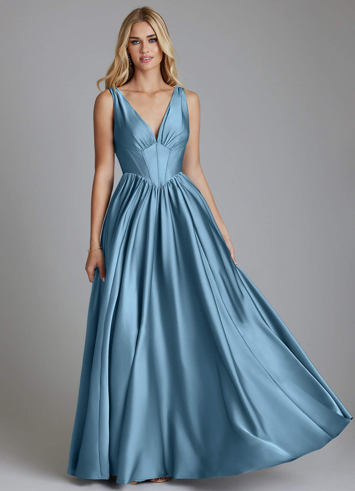 Abito A-Line in Raso Elasticizzato Corsetto Blu Acciaio