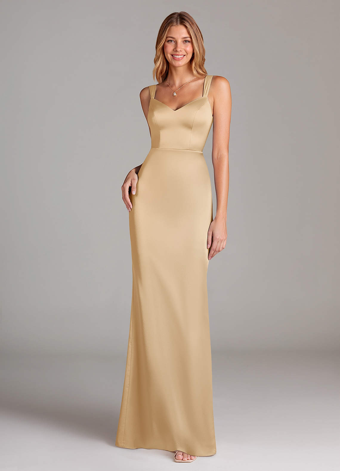 Abito Tubino in Raso Elasticizzato Plissettato Oro