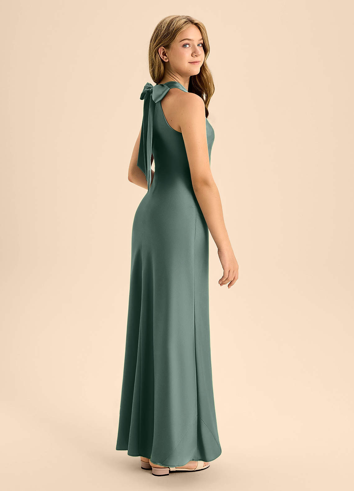 Abito A-Line in Raso Elasticizzato Plissettato Muschio Marino