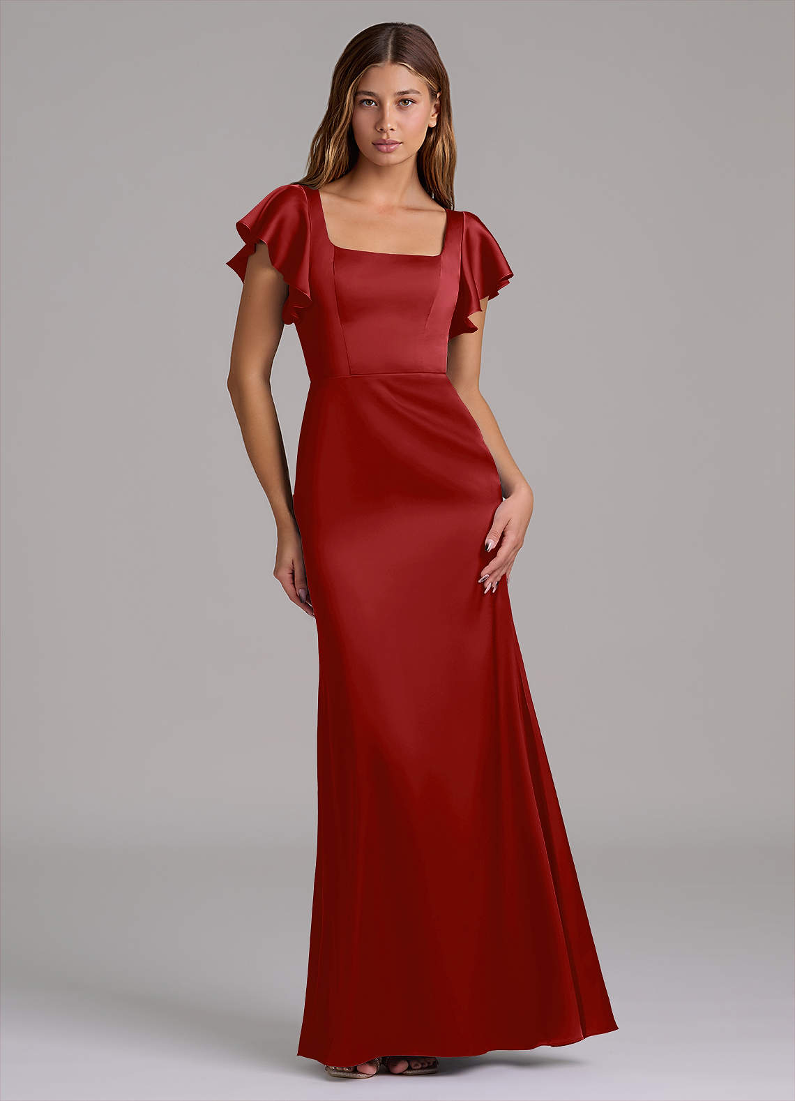 Abito Sirena in Raso Elasticizzato Scollo Quadrato Melograno