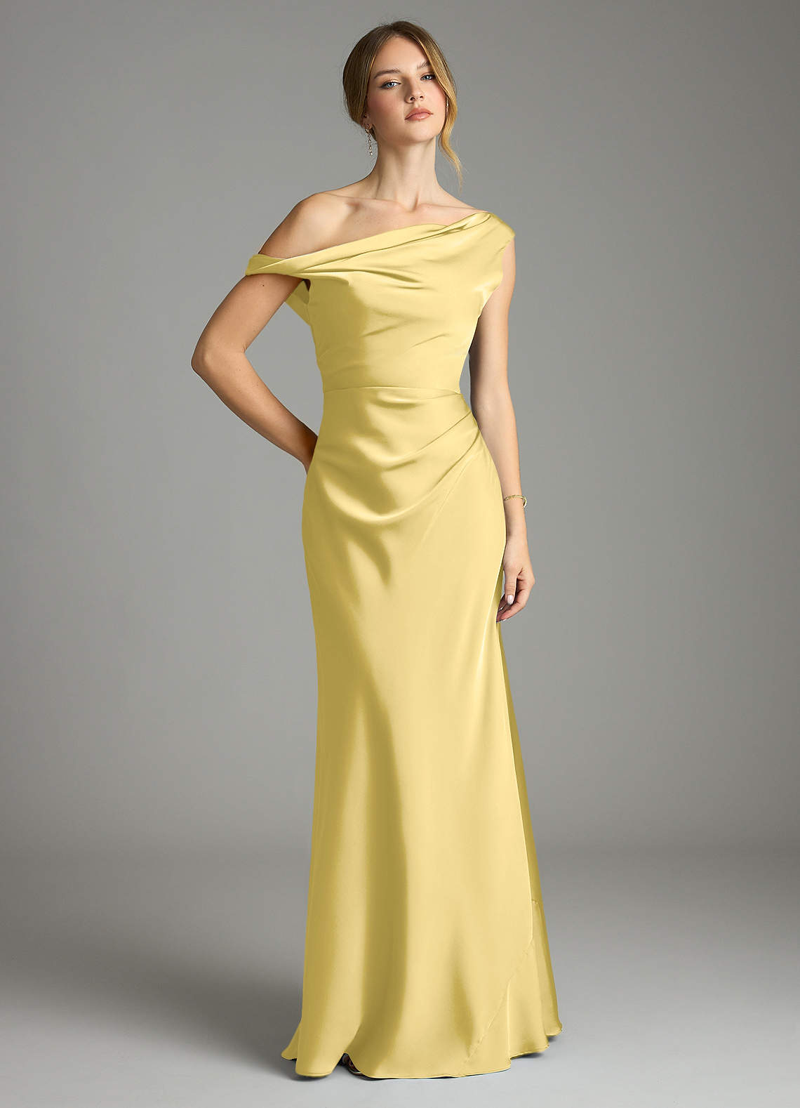 Abito Sirena in Raso Elasticizzato a Spalla Scoperta Canarino