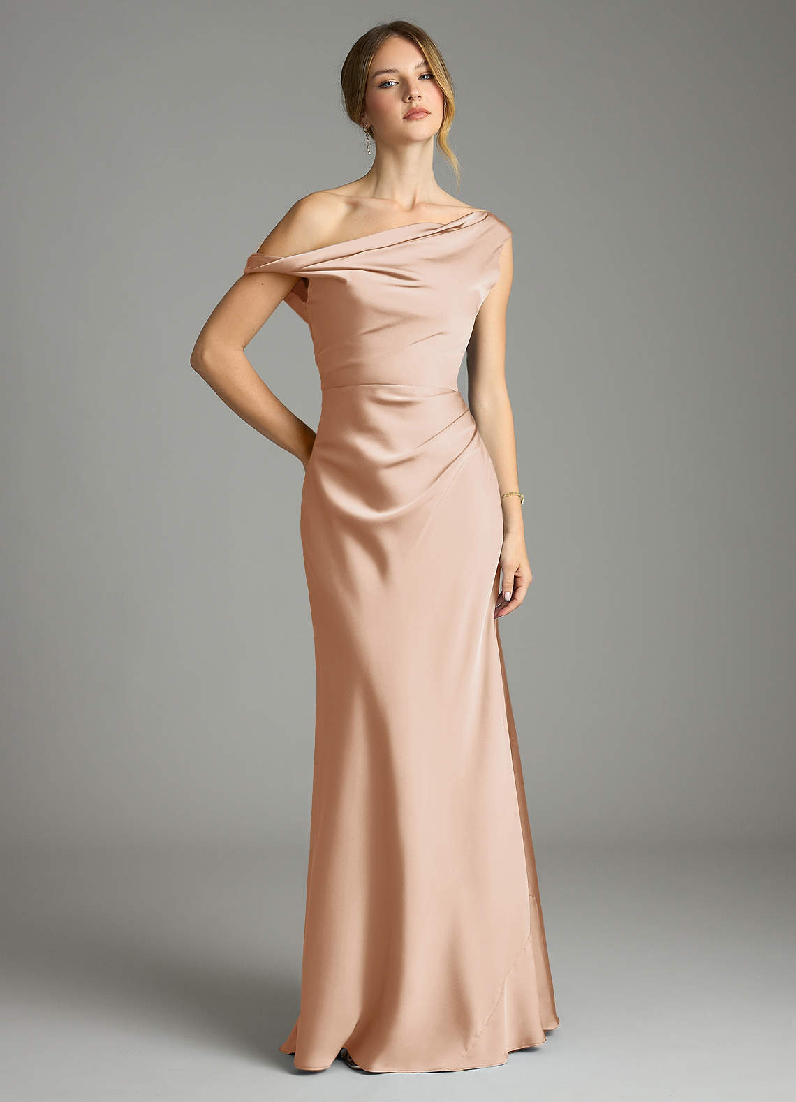 Abito Sirena in Raso Elasticizzato a Spalla Scoperta Rosa Inglese