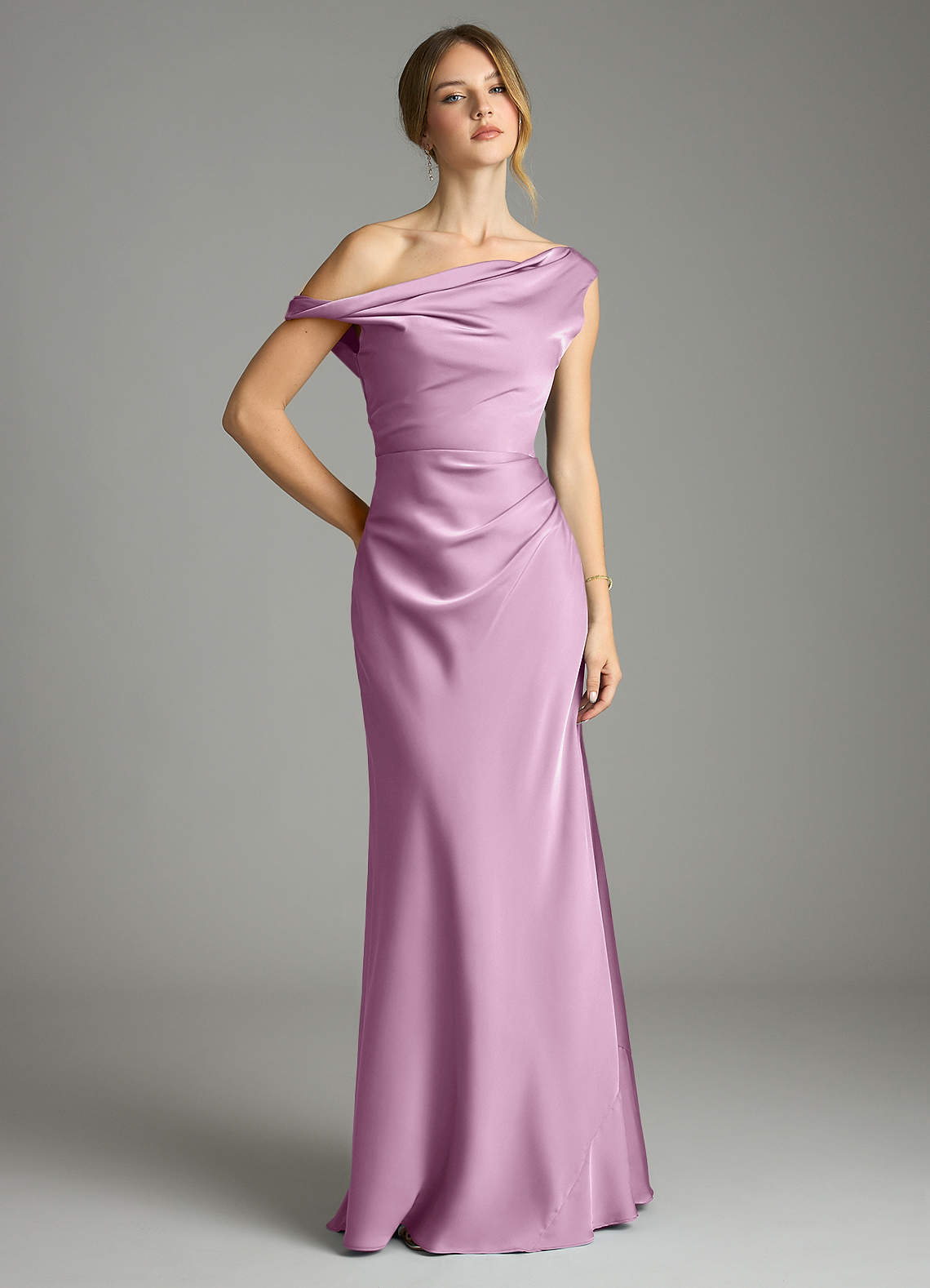 Abito Sirena in Raso Elasticizzato a Spalla Scoperta Glicine