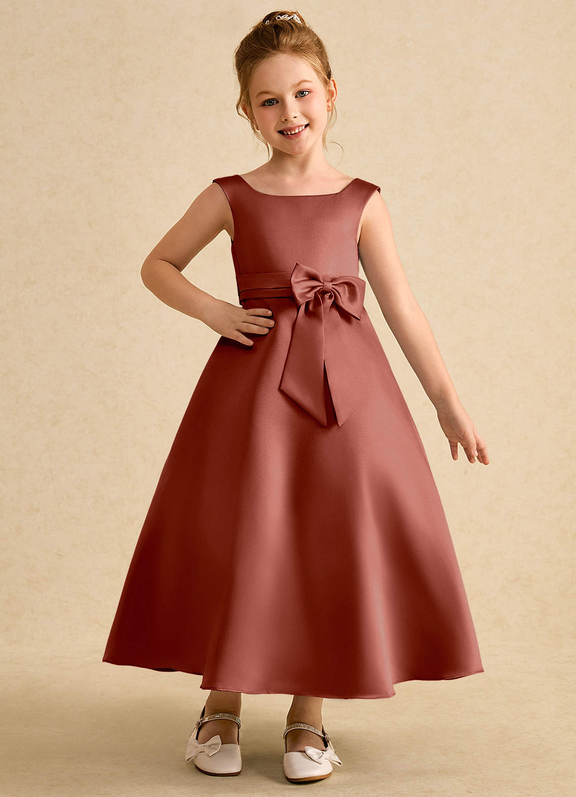 Abito A-Line in Raso Opaco Plissettato Auburn