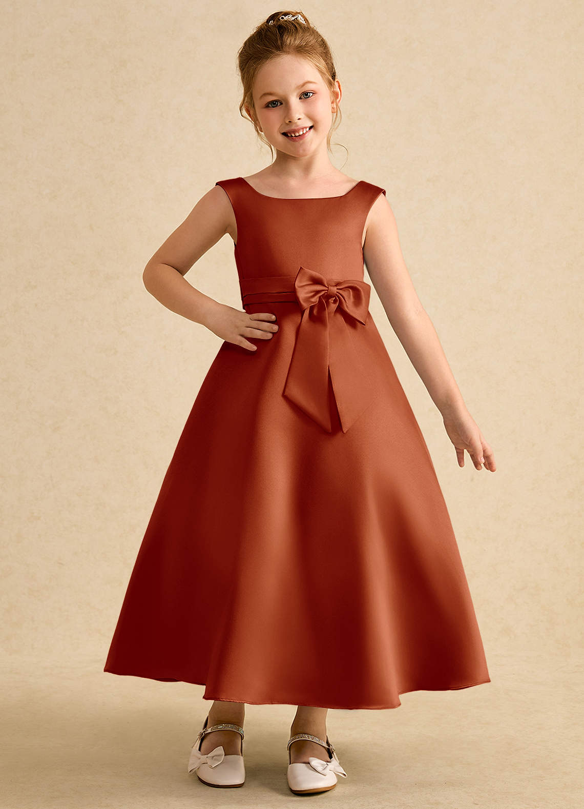 Abito A-Line in Raso Opaco Plissettato Paprika