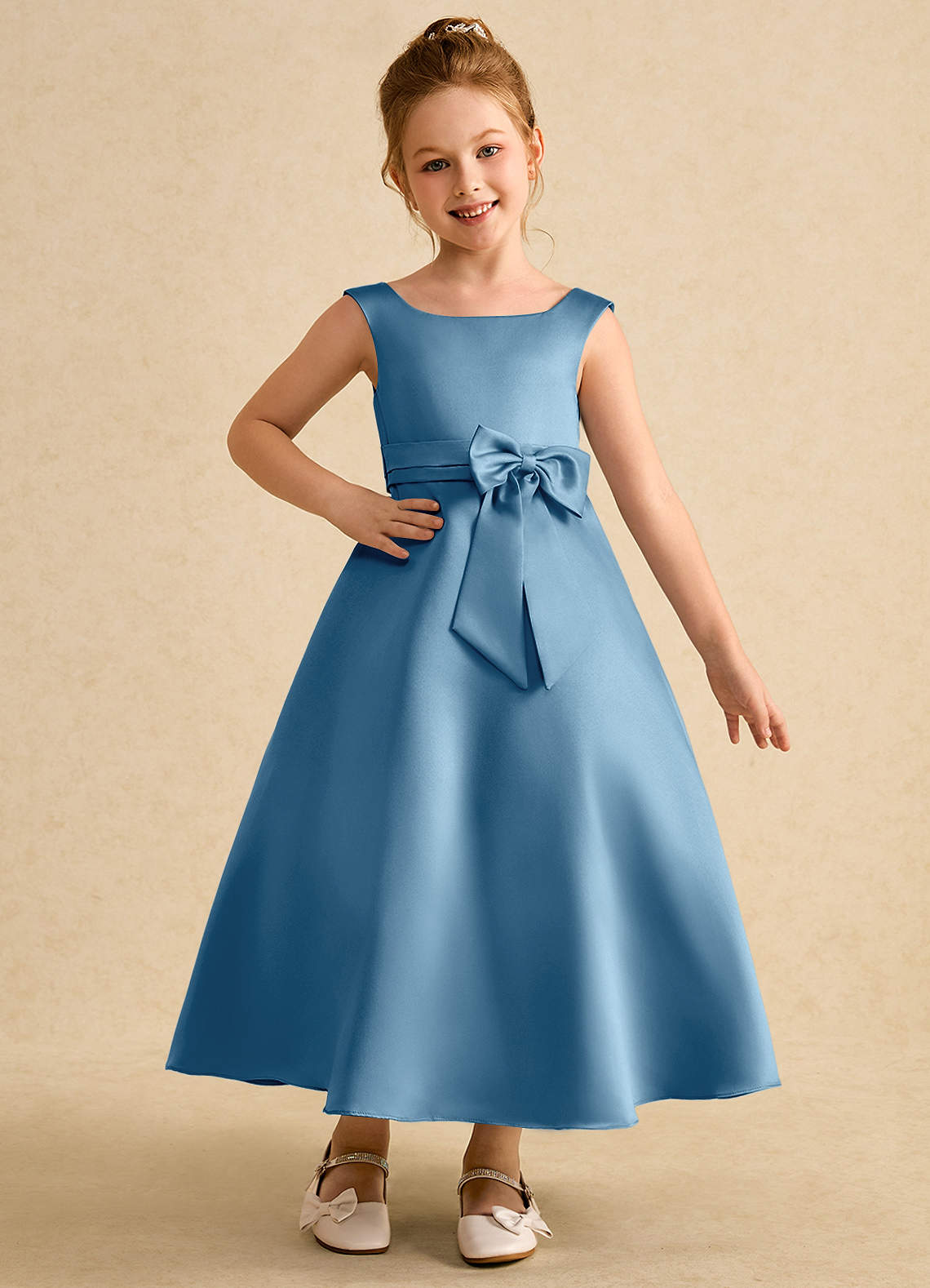 Abito A-Line in Raso Opaco Plissettato Blu Acciaio