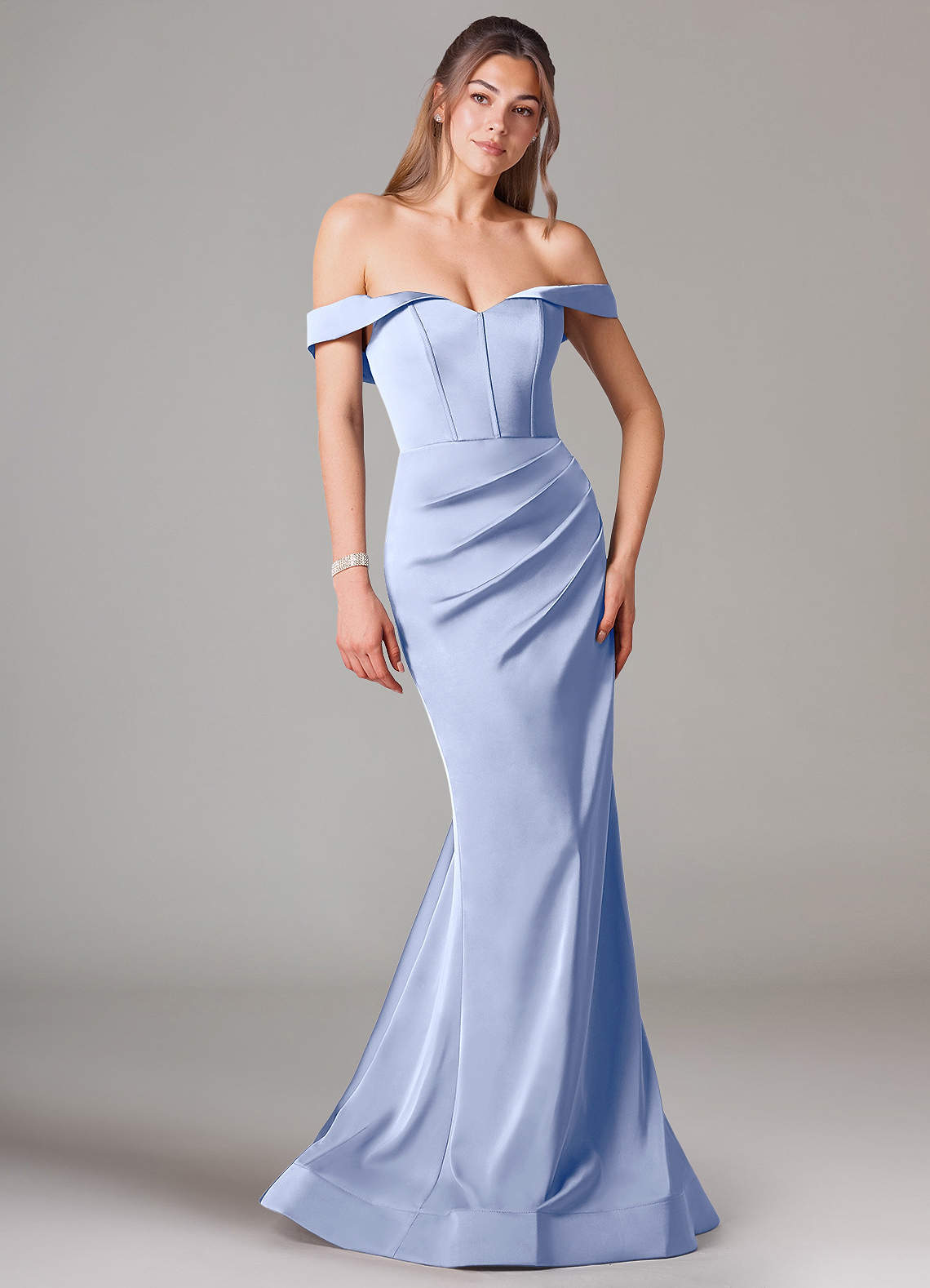 Abito Convertibile Sirena in Raso Elasticizzato a Spalla Scoperta Ghiaccio