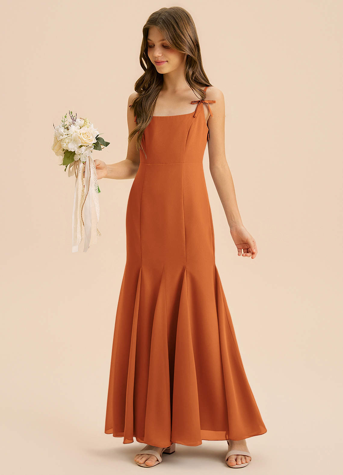 Abito Sirena in Chiffon Plissettato Cannella