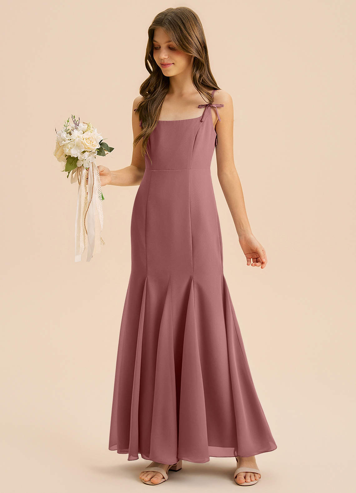 Abito Sirena in Chiffon Plissettato Rosa Del Deserto