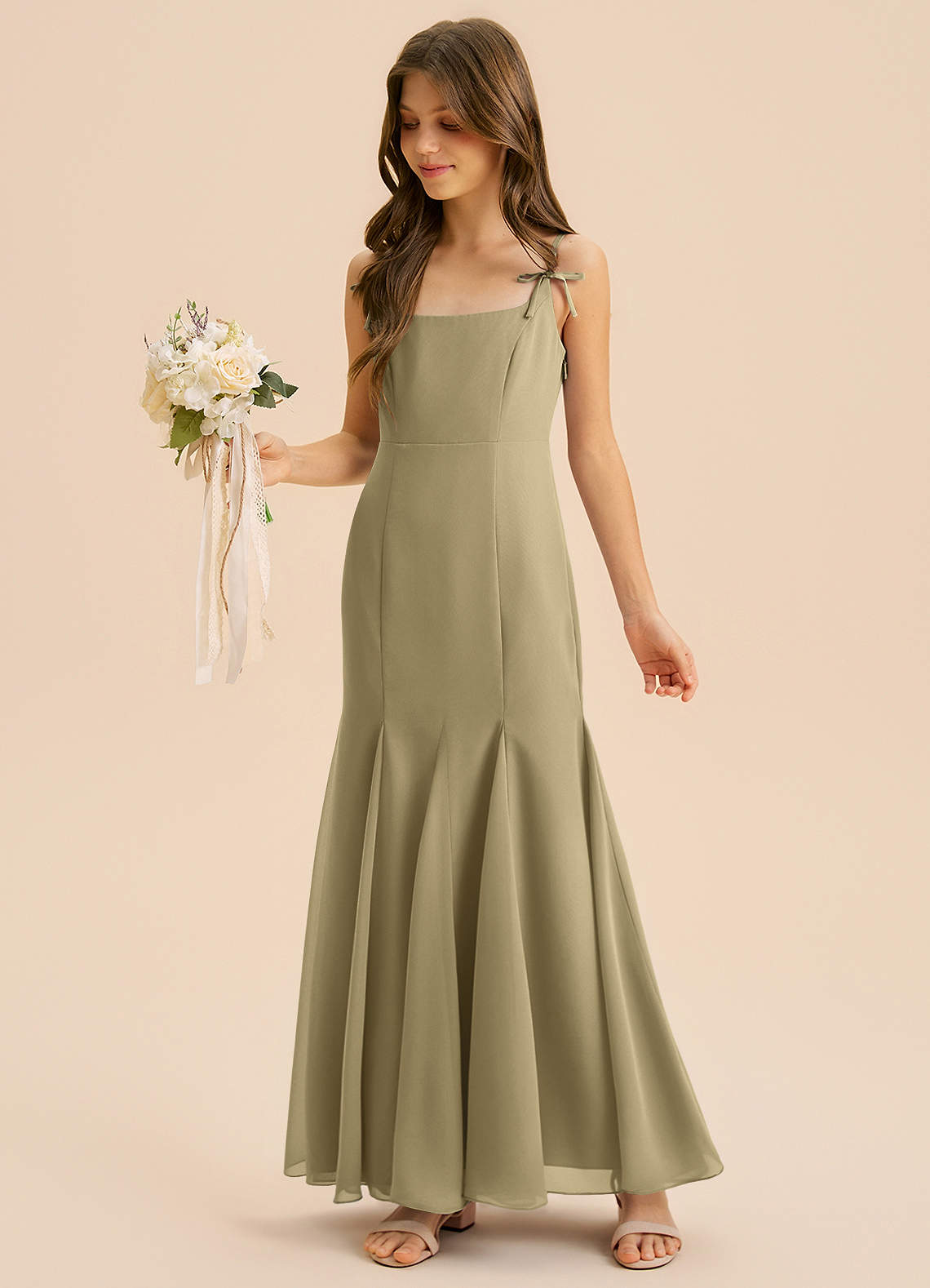 Abito Sirena in Chiffon Plissettato Verde Muschio