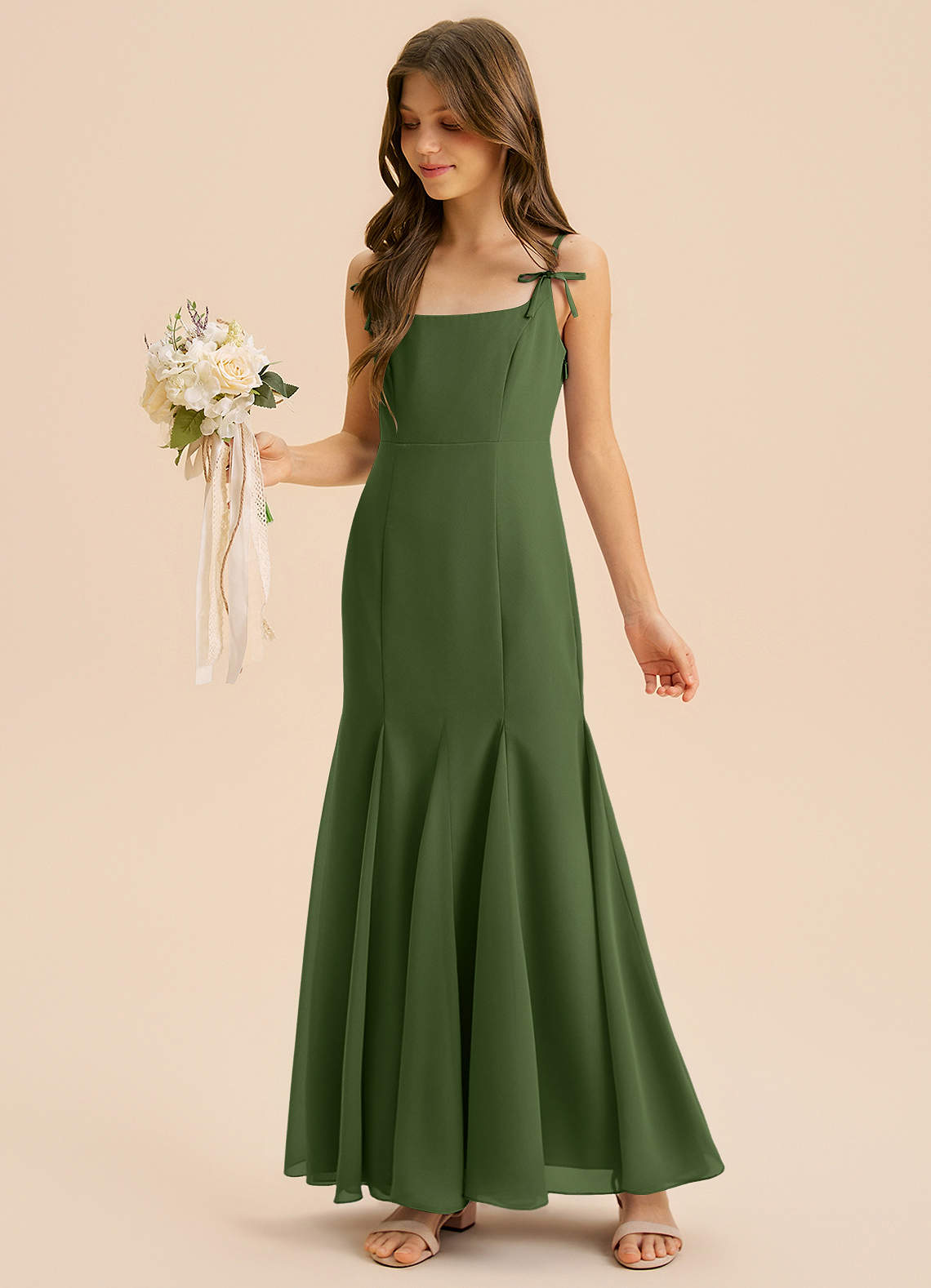 Abito Sirena in Chiffon Plissettato Oliva