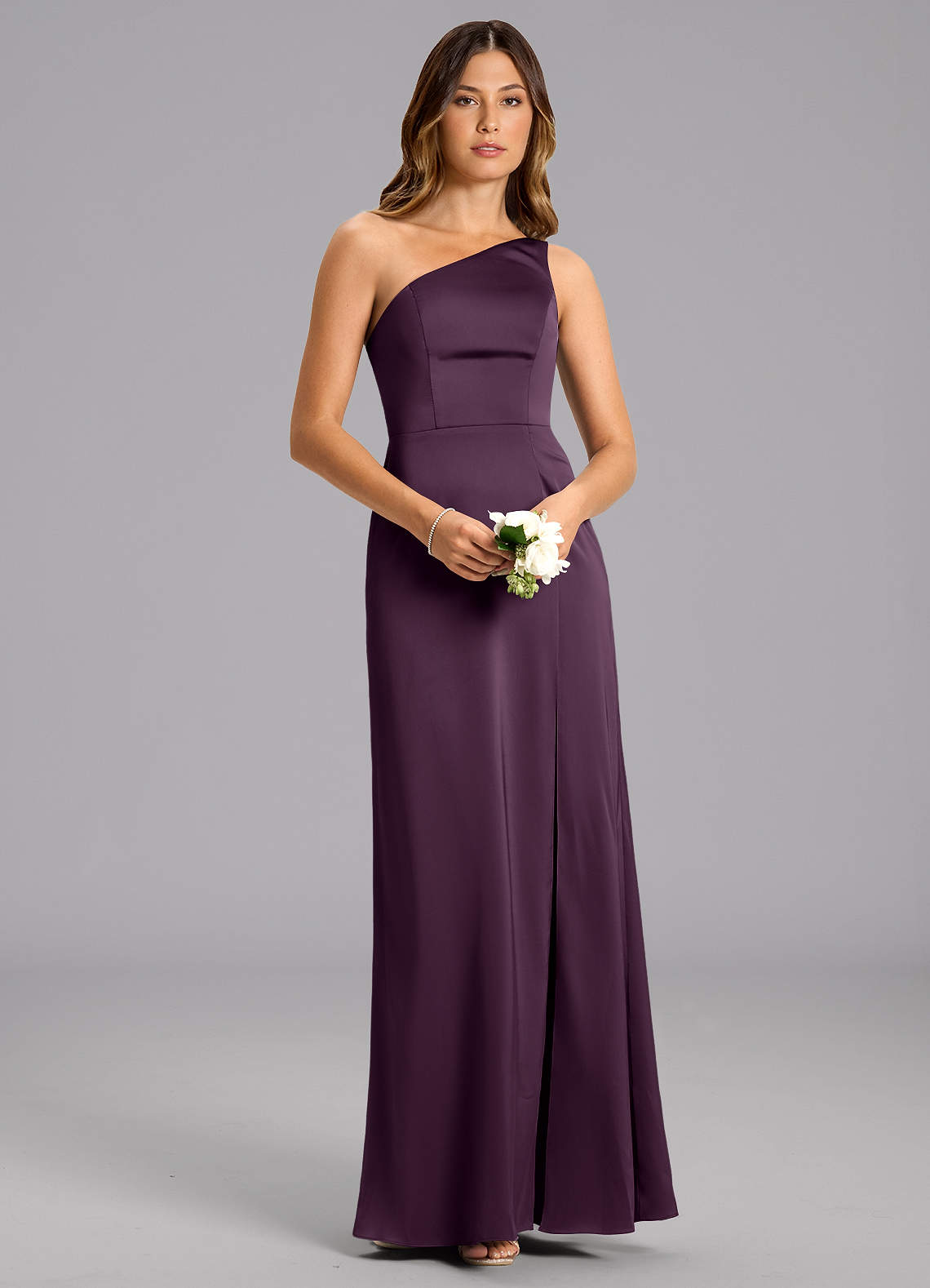 Abito A-Line in Raso Elasticizzato Monospalla Prugna