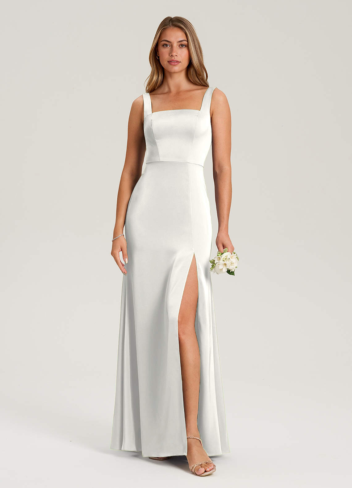 Abito A-Line in Raso Elasticizzato Fiocco Bianco