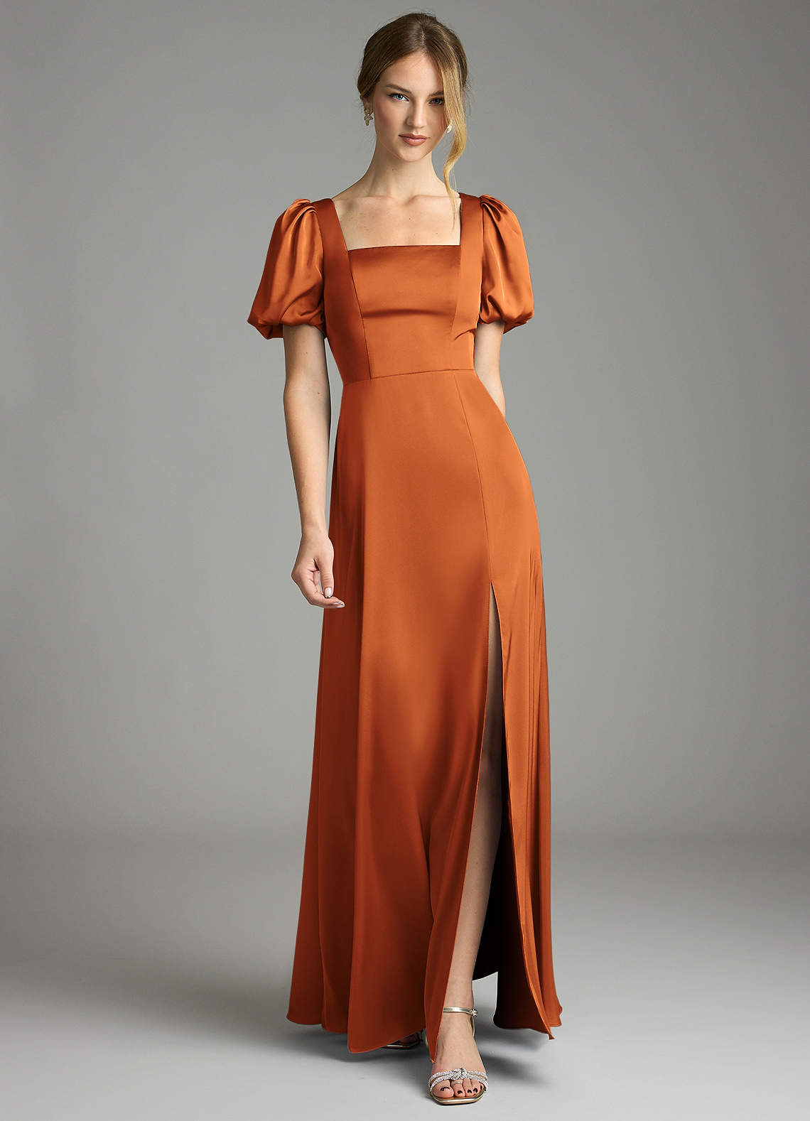 Abito A-Line in Raso Elasticizzato Plissettato Cannella