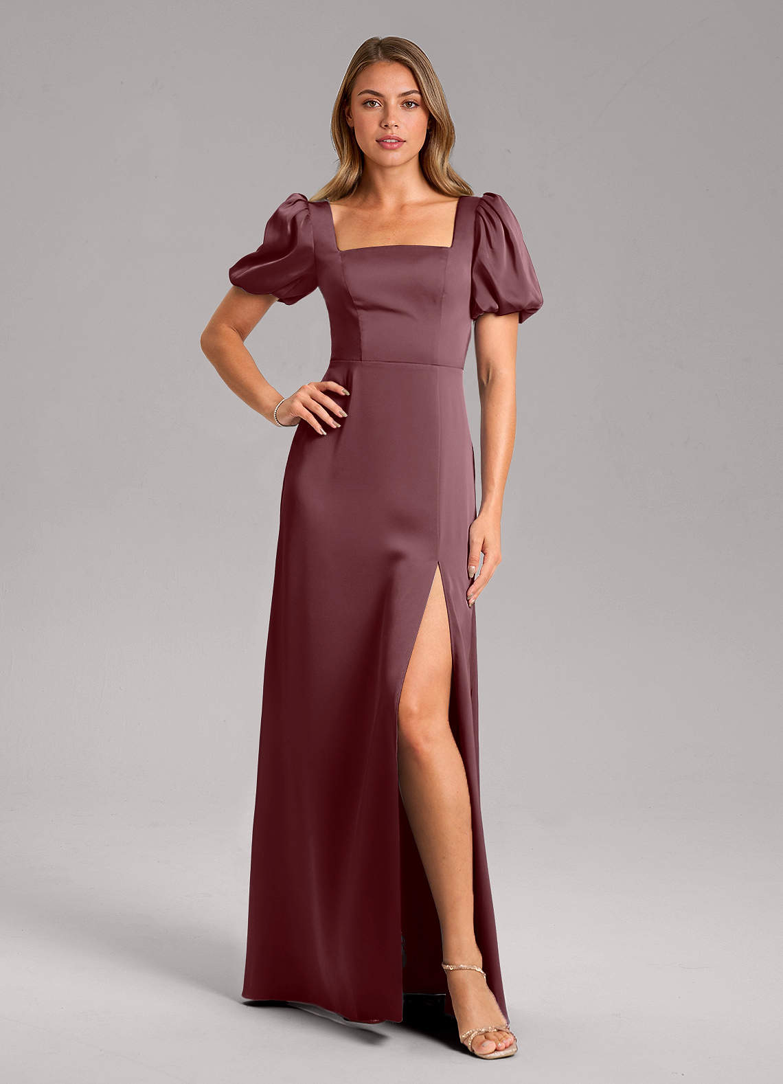 Abito A-Line in Raso Elasticizzato Plissettato Sangria