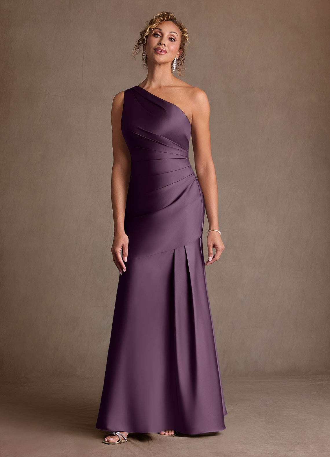 Abito Sirena in Raso Elasticizzato Monospalla Prugna