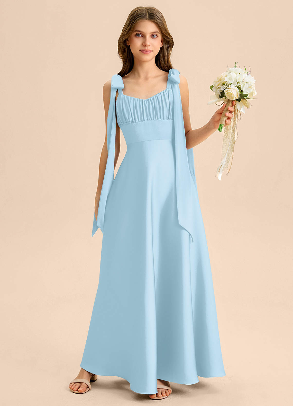 Abito A-Line in Raso Elasticizzato Fiocco Azzurro