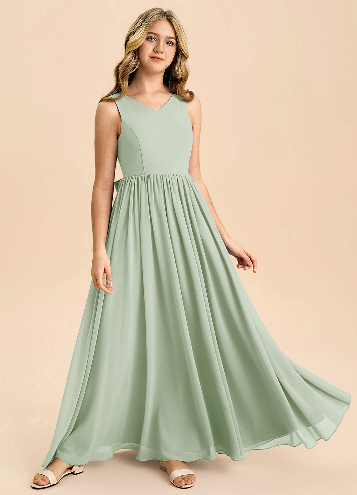 Abito A-Line in Chiffon Fiocco Verde Salvia