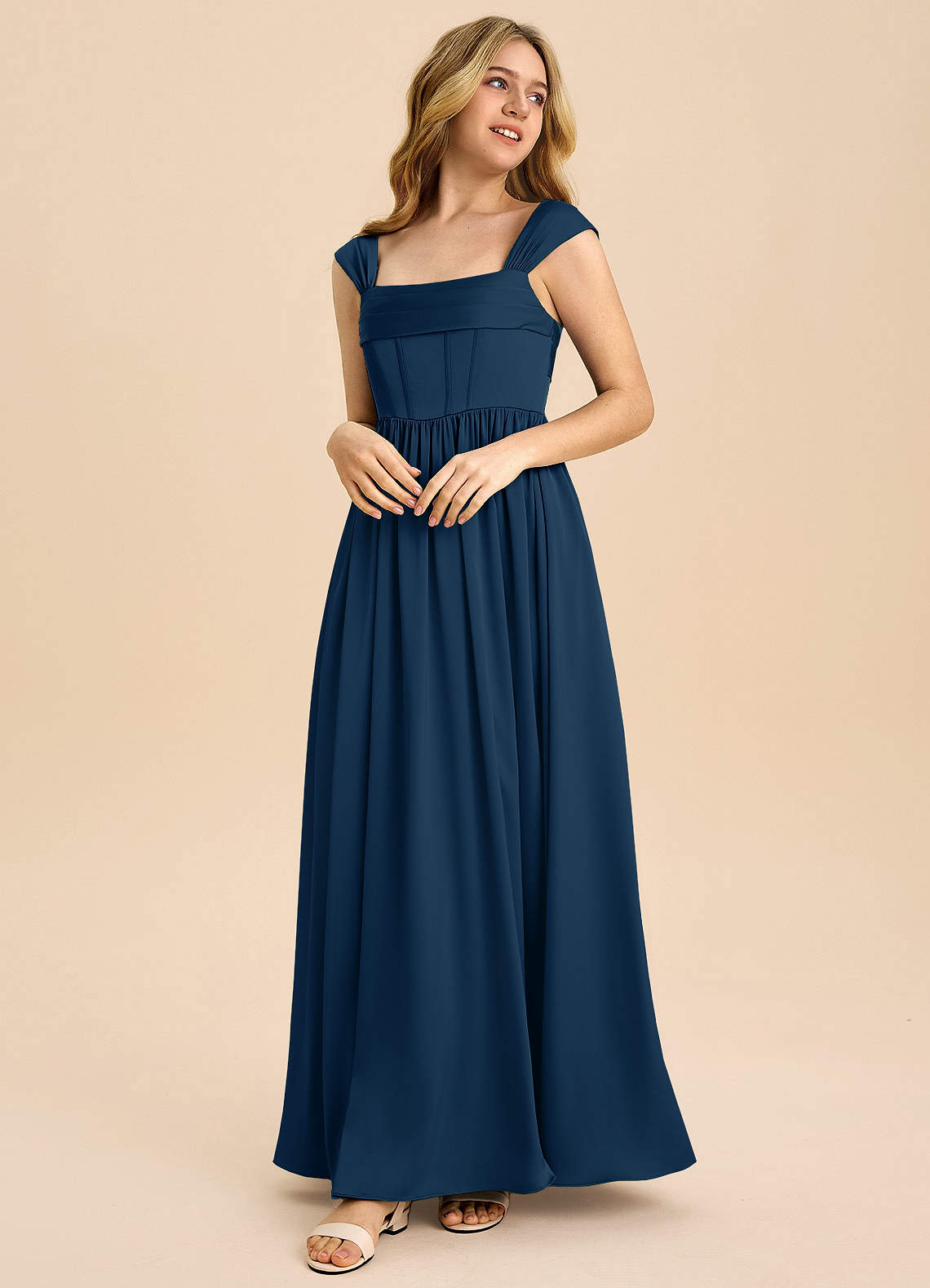 Abito A-Line in Raso Elasticizzato Plissettato Marino Scuro