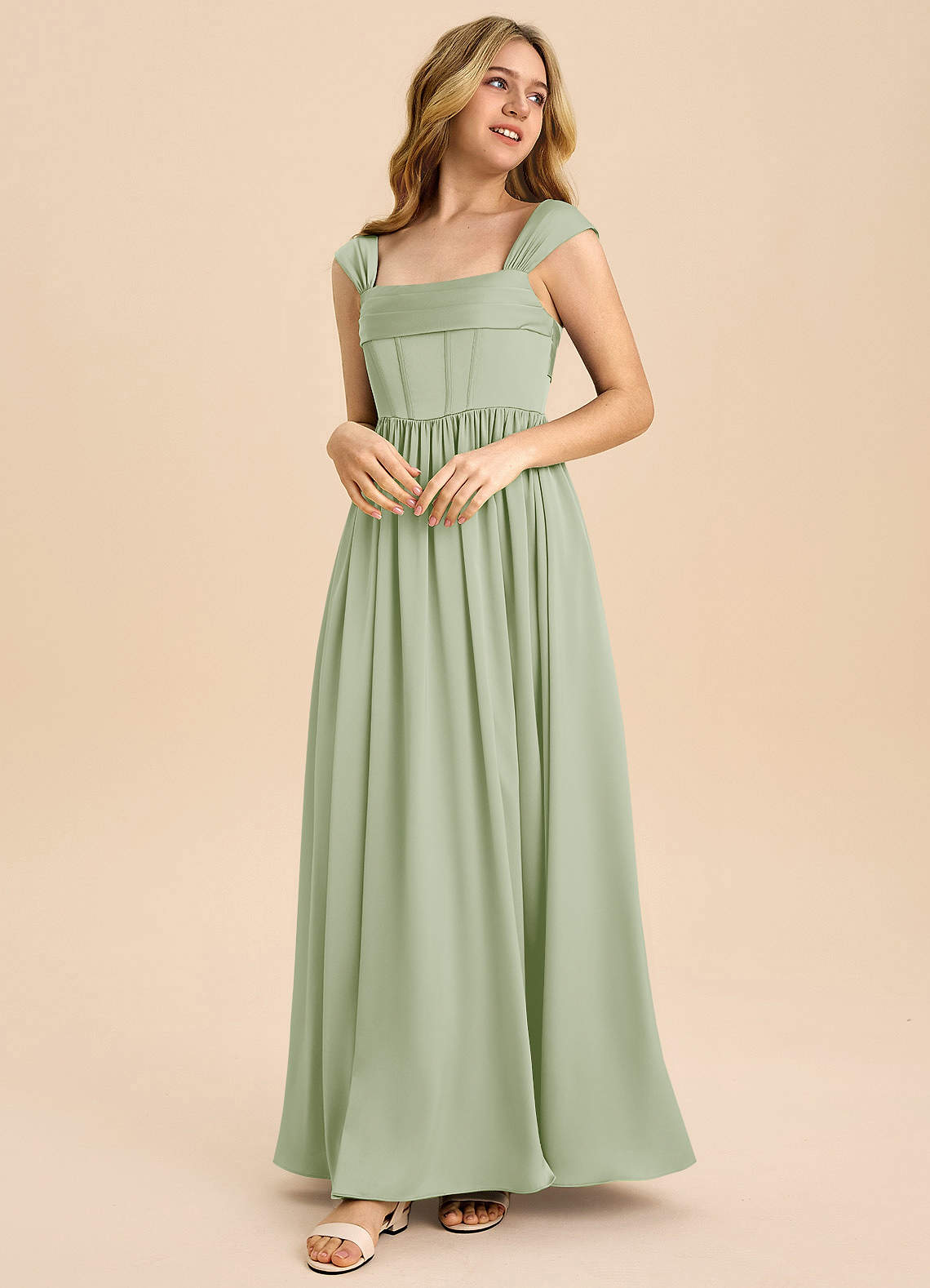 Abito A-Line in Raso Elasticizzato Plissettato Verde Salvia