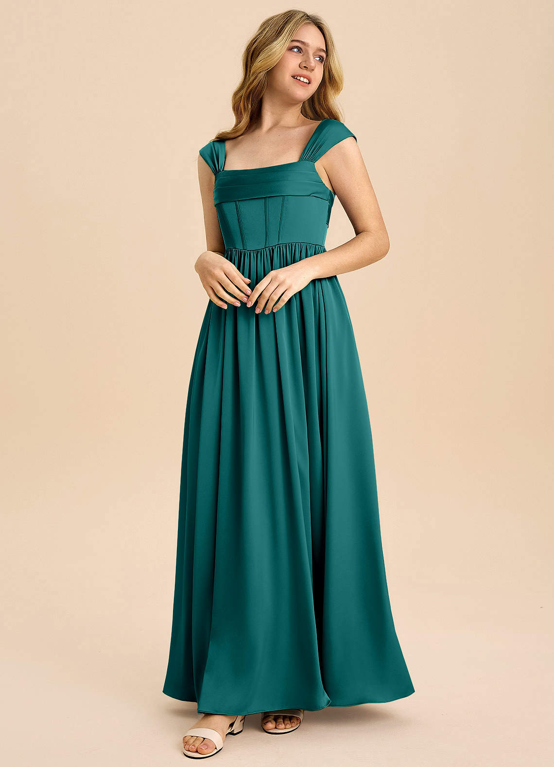 Abito A-Line in Raso Elasticizzato Plissettato Verde Pavone
