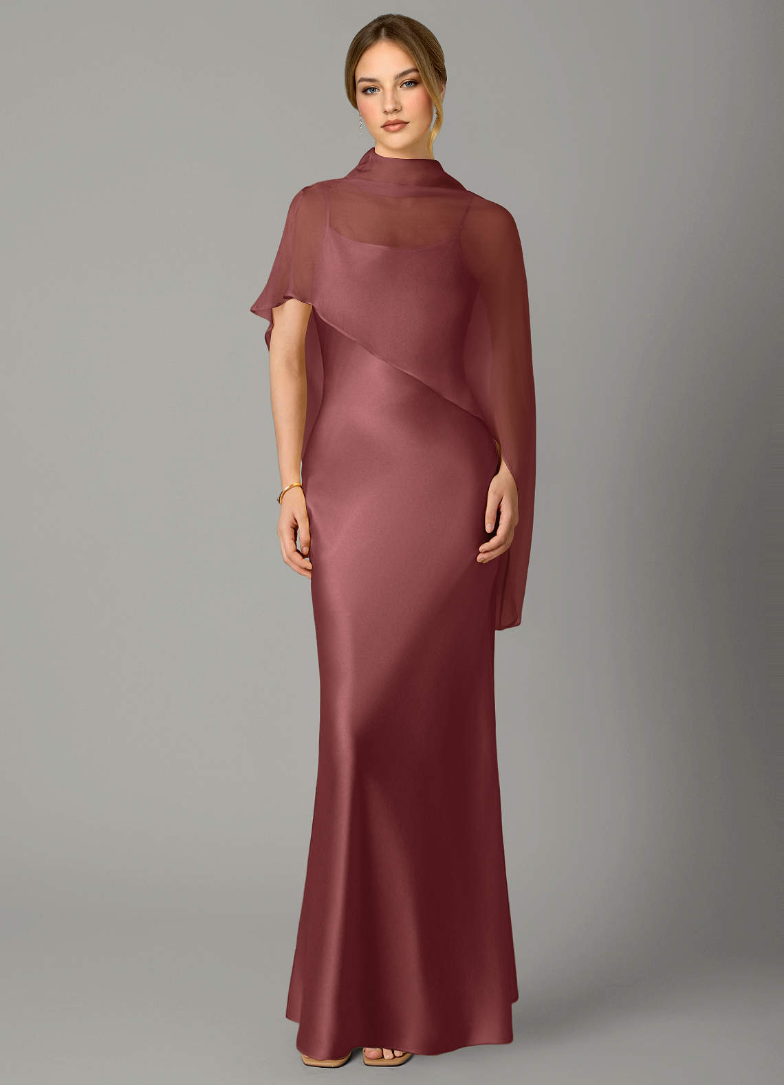 Abito A-Line in Raso Elasticizzato Collo Alto Ametista