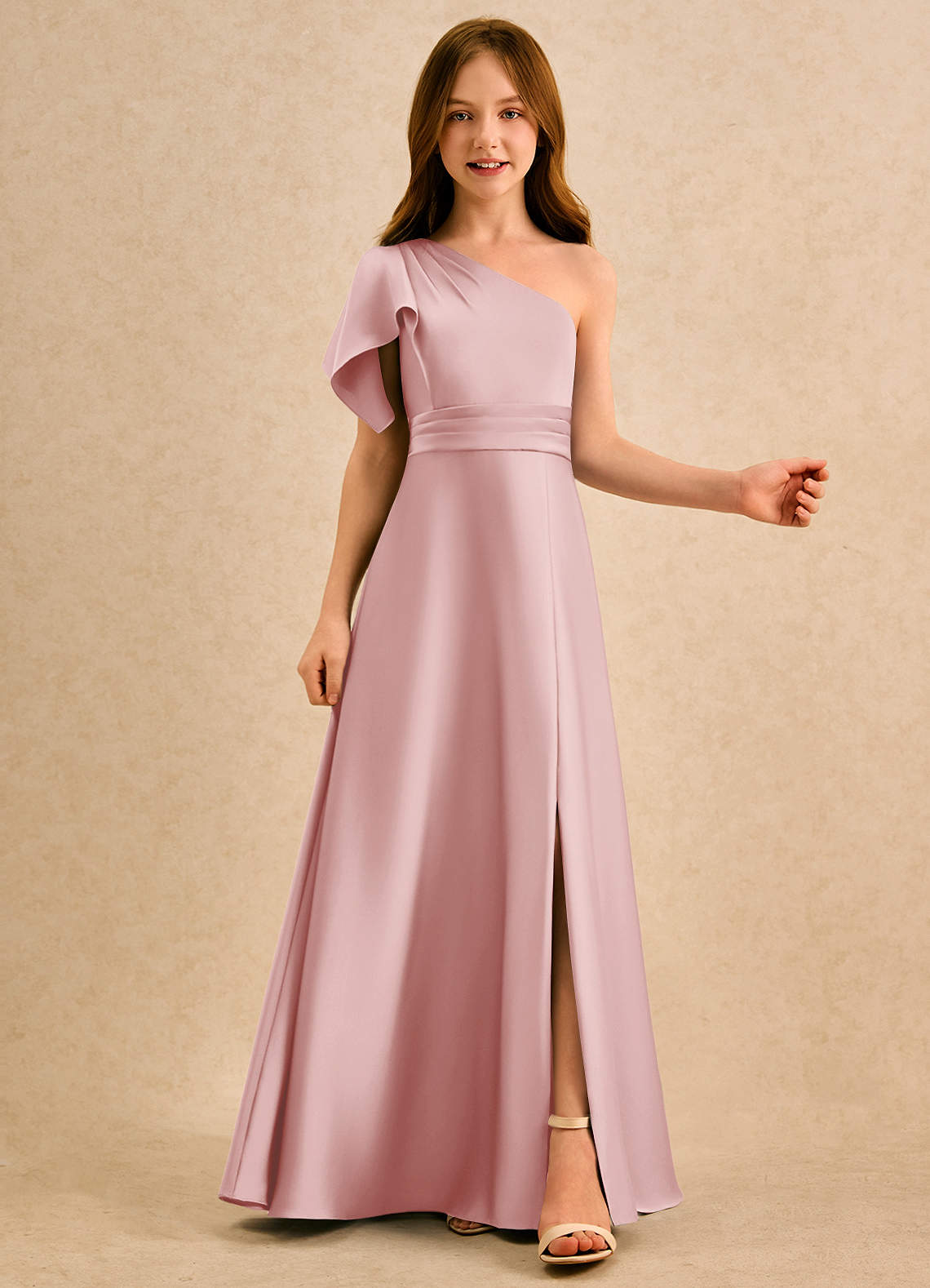 Abito A-Line in Raso Elasticizzato Monospalla Rosa Cipria