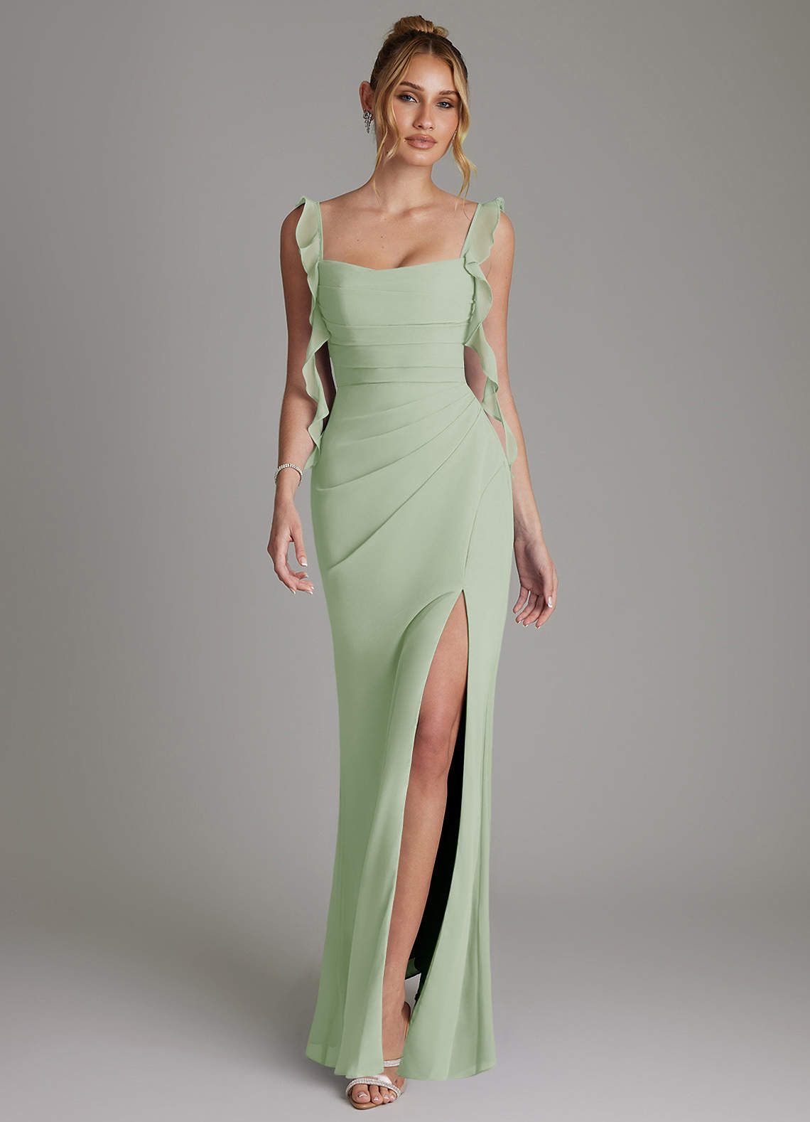 Abito Sirena in Chiffon Corsetto Verde Salvia