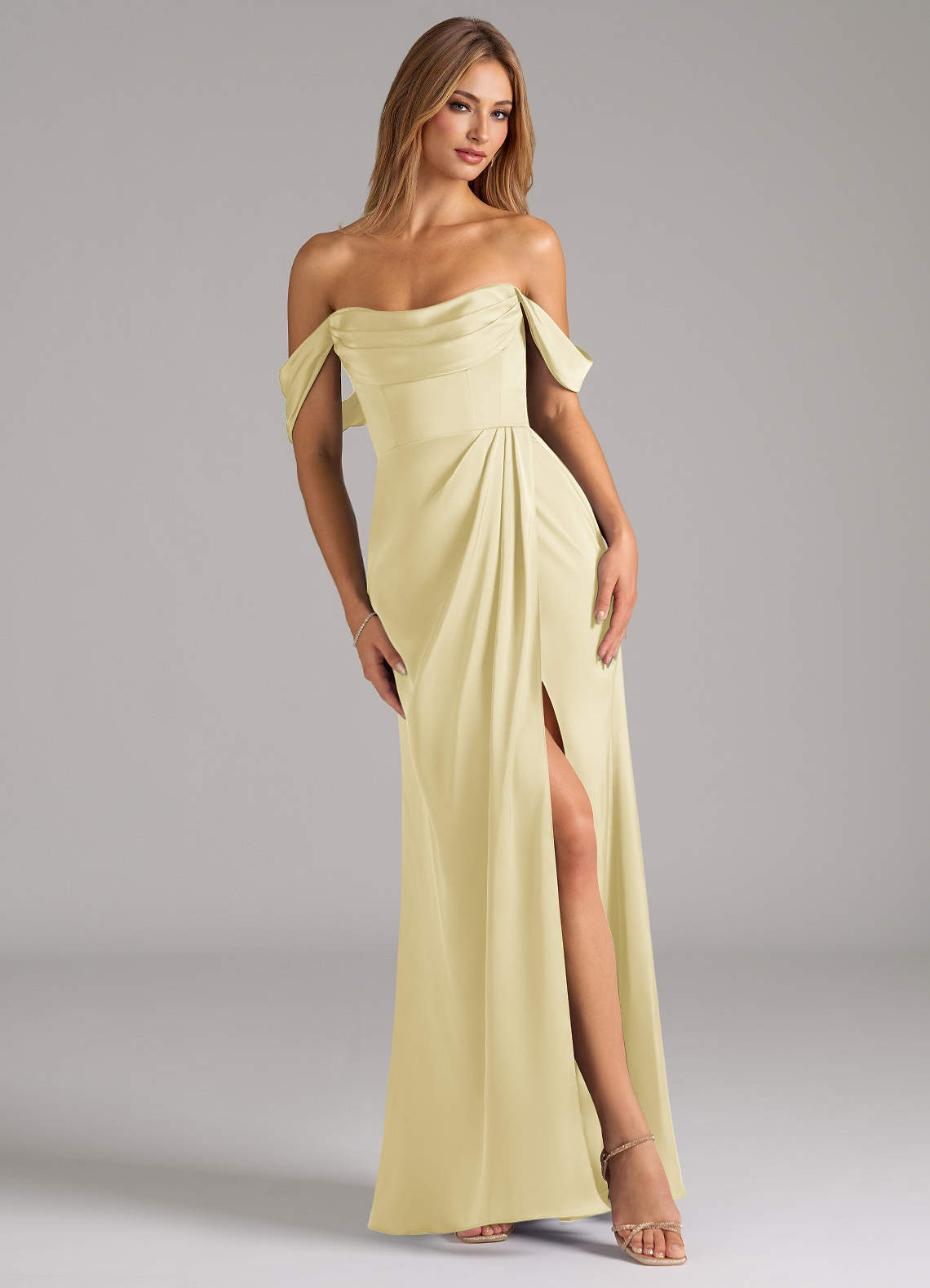 Abito Convertibile Sirena in Raso Elasticizzato a Spalla Scoperta Sorbetto Al Limone